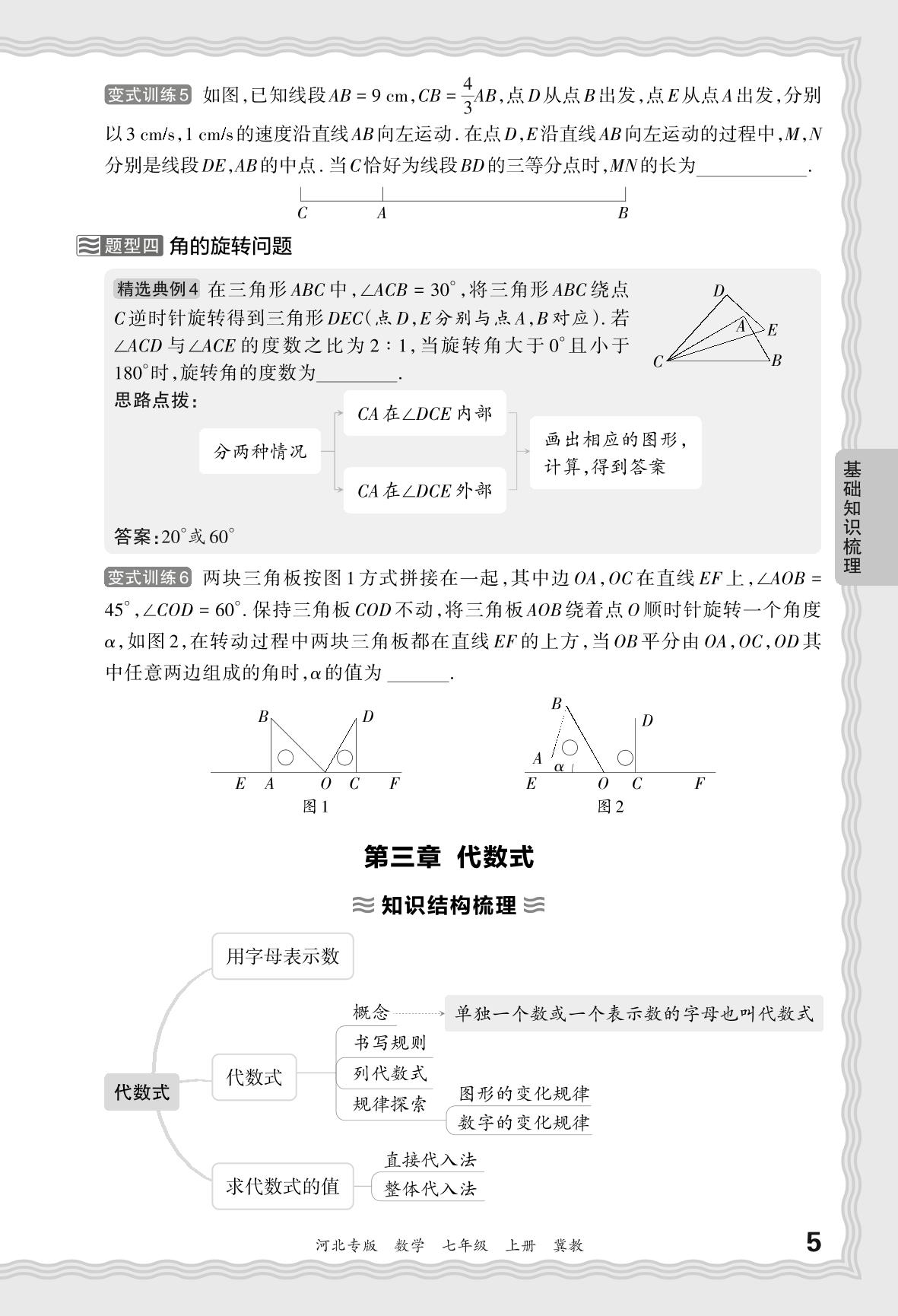 2023秋上册七年级数学冀教版 期末过课本·基础知识梳理 第三章 代数式