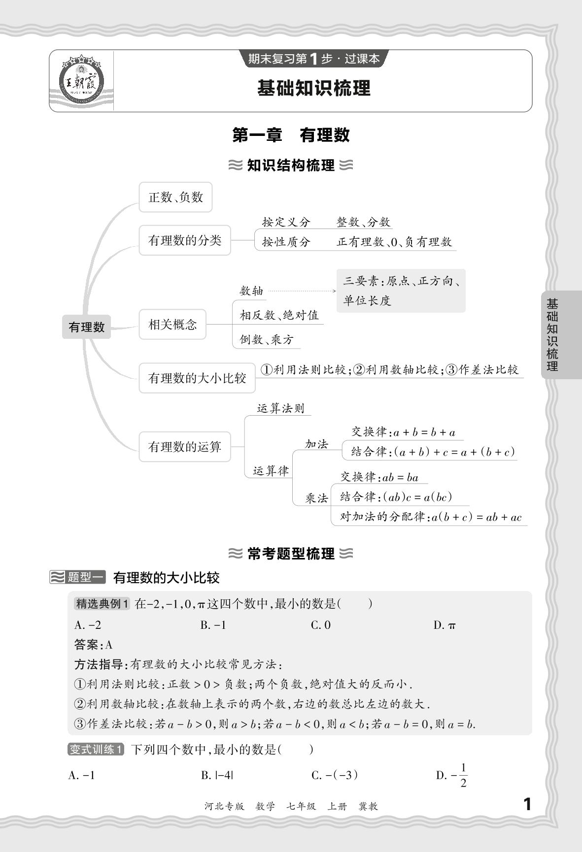 2023秋上册七年级数学冀教版 期末过课本·基础知识梳理 第一章 有理数