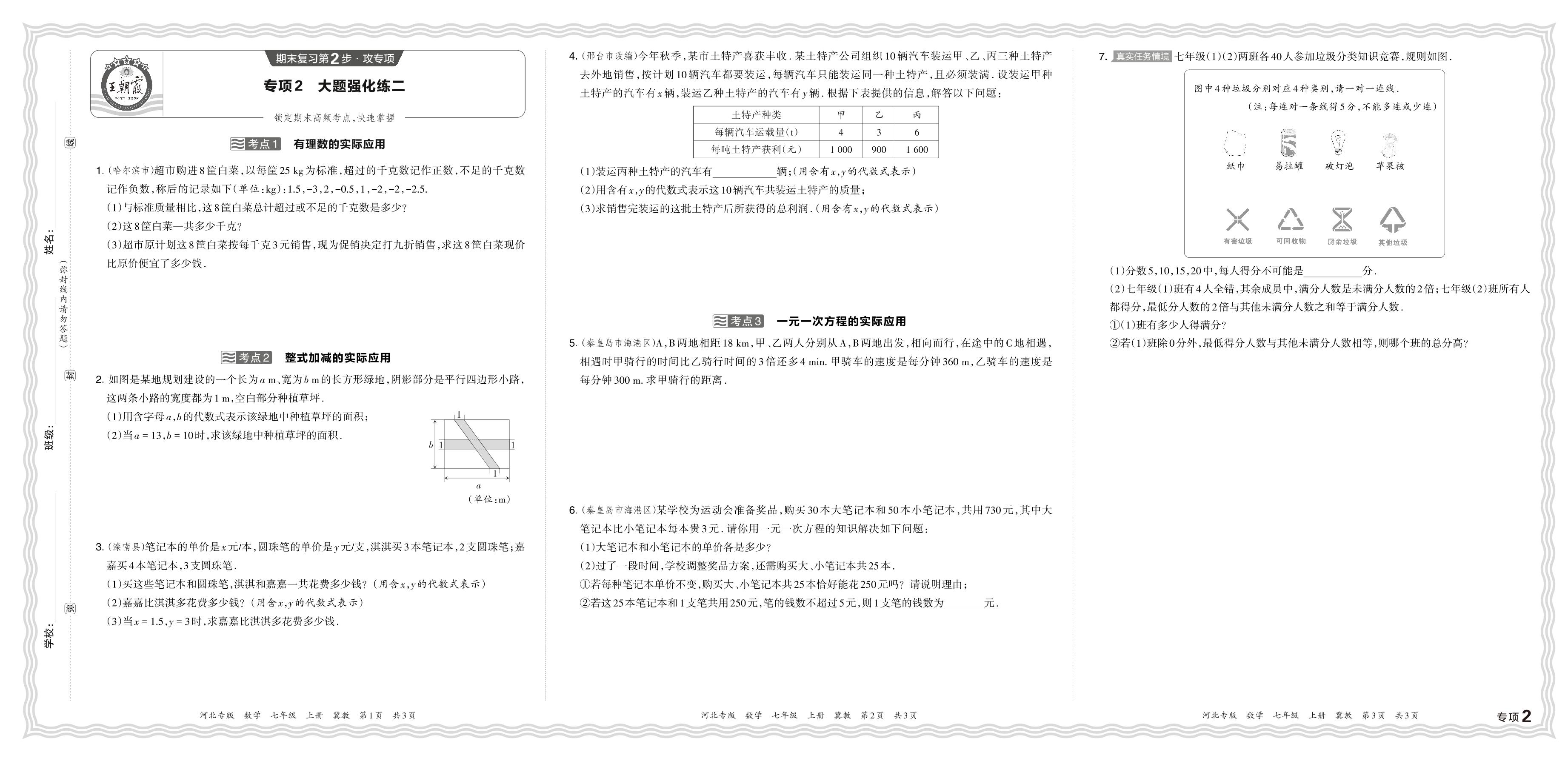 2023秋上册七年级数学冀教版 期末专项卷·大题强化练二
