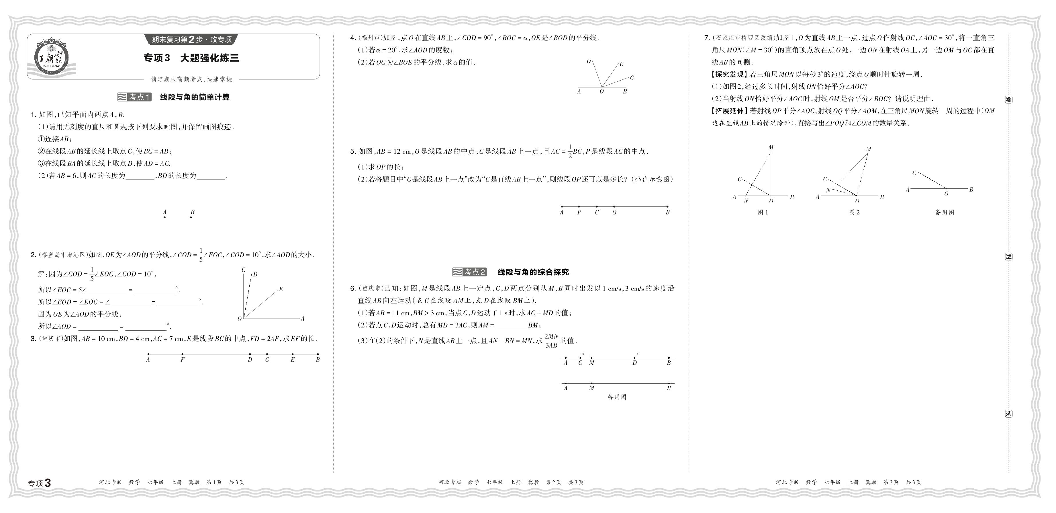 2023秋上册七年级数学冀教版 期末专项卷·大题强化练三