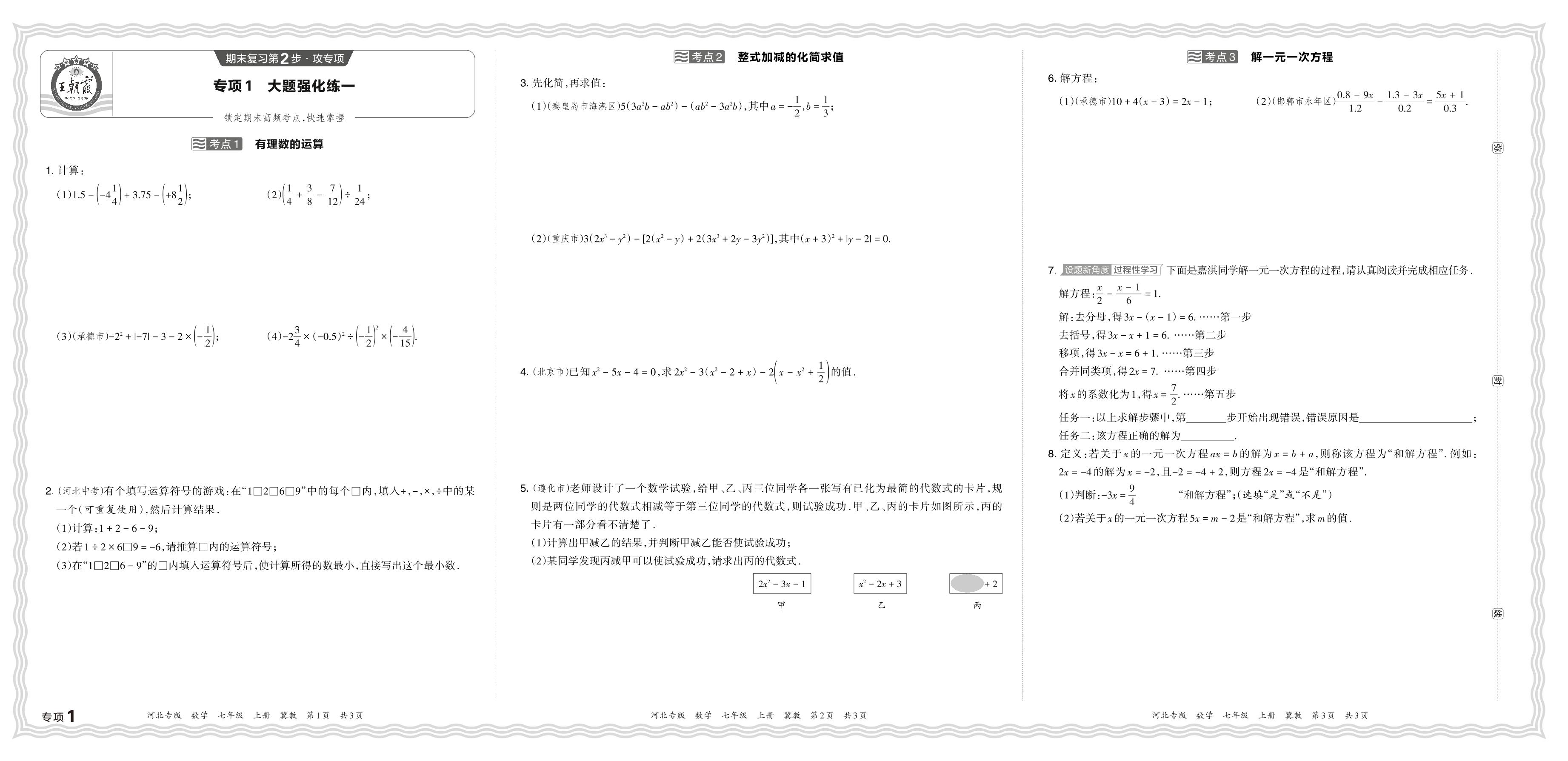 2023秋上册七年级数学冀教版 期末专项卷·大题强化练一