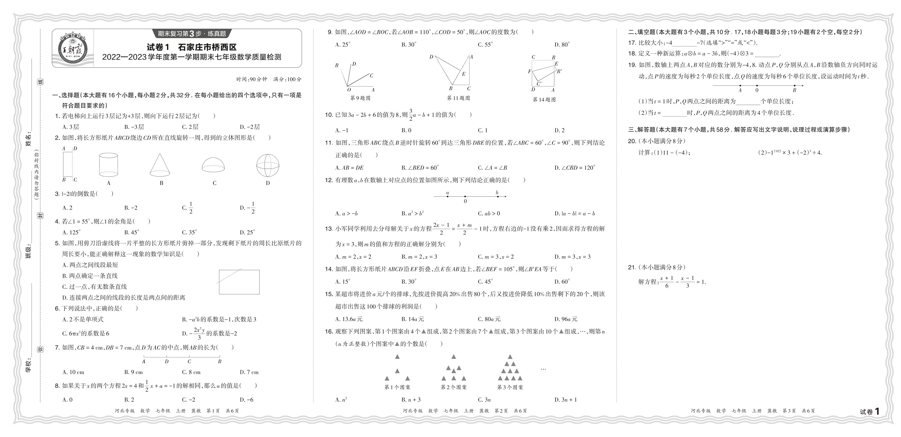 河北省石家庄市桥西区2022—2023学年度第一学期期末七年级数学质量检测(冀教版)【1】