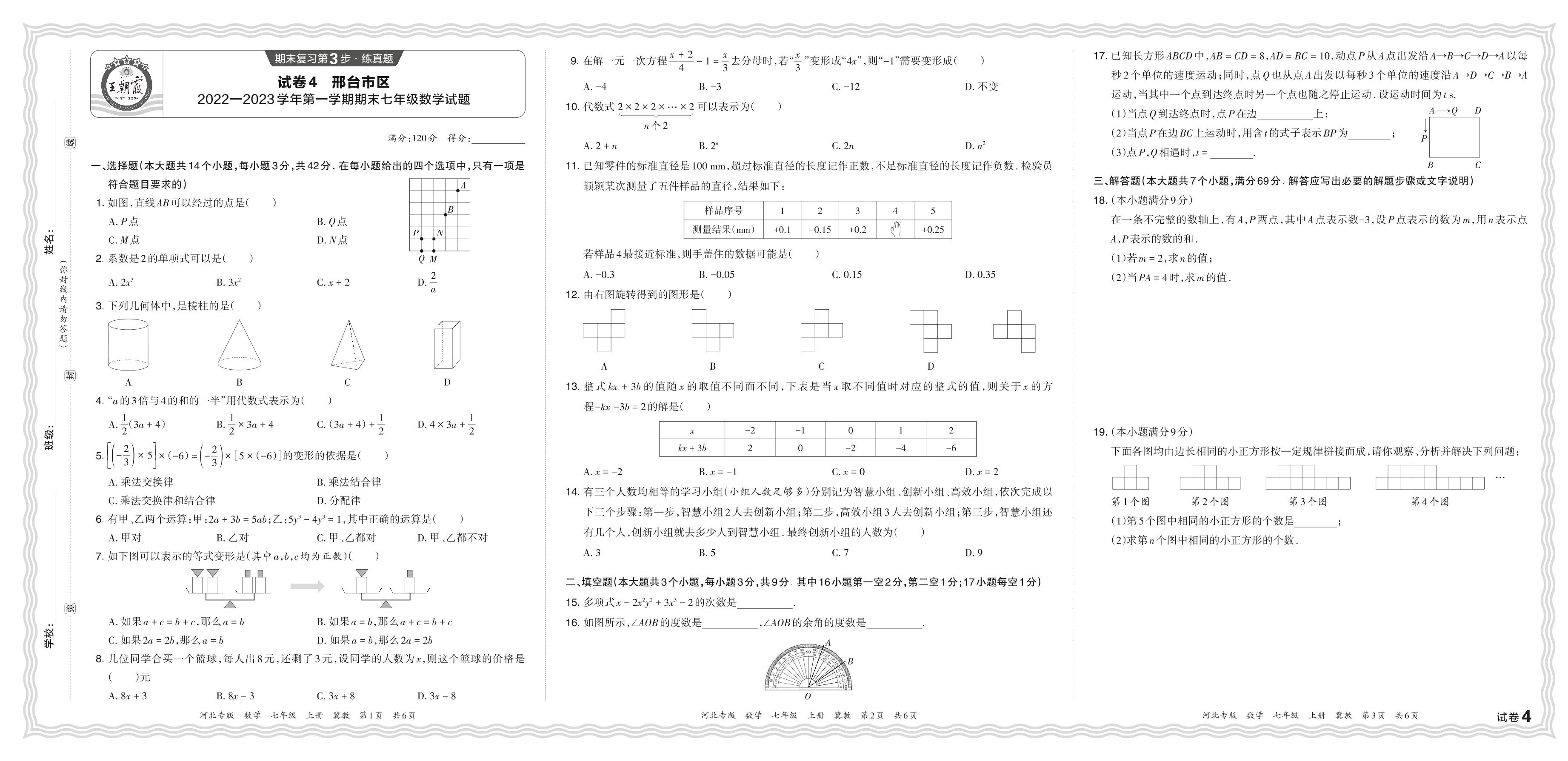河北省邢台市区2022—2023学年第一学期期末七年级数学试题(冀教版)【4】