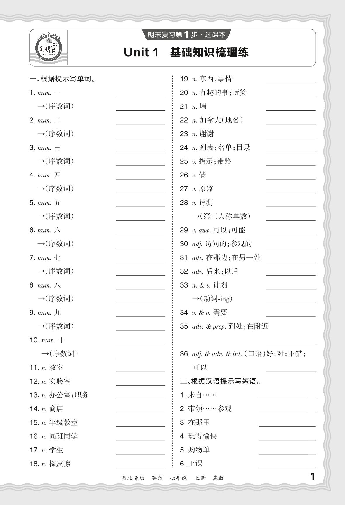 2023秋上册七年级英语冀教版 期末过课本·Unit 1 基础知识梳理练