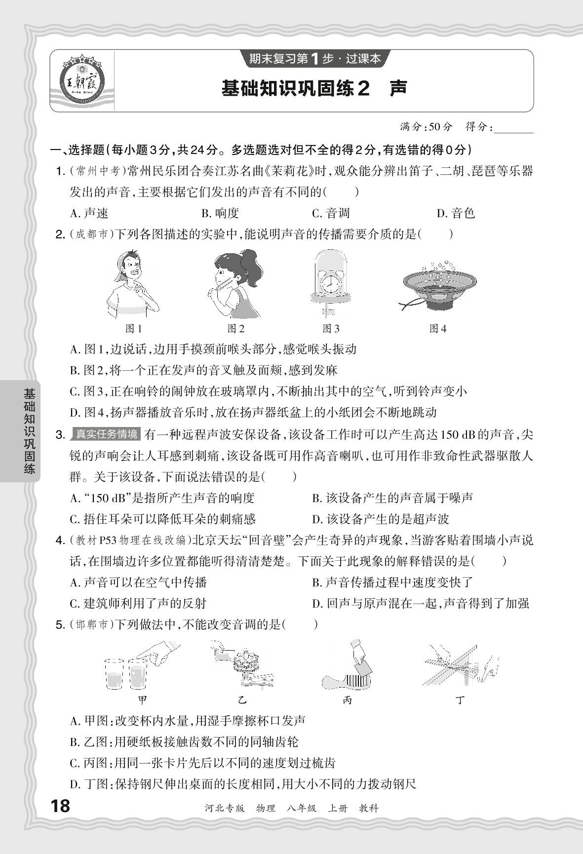 2023秋上册八年级物理教科版 期末过课本·基础知识巩固练 声【2】