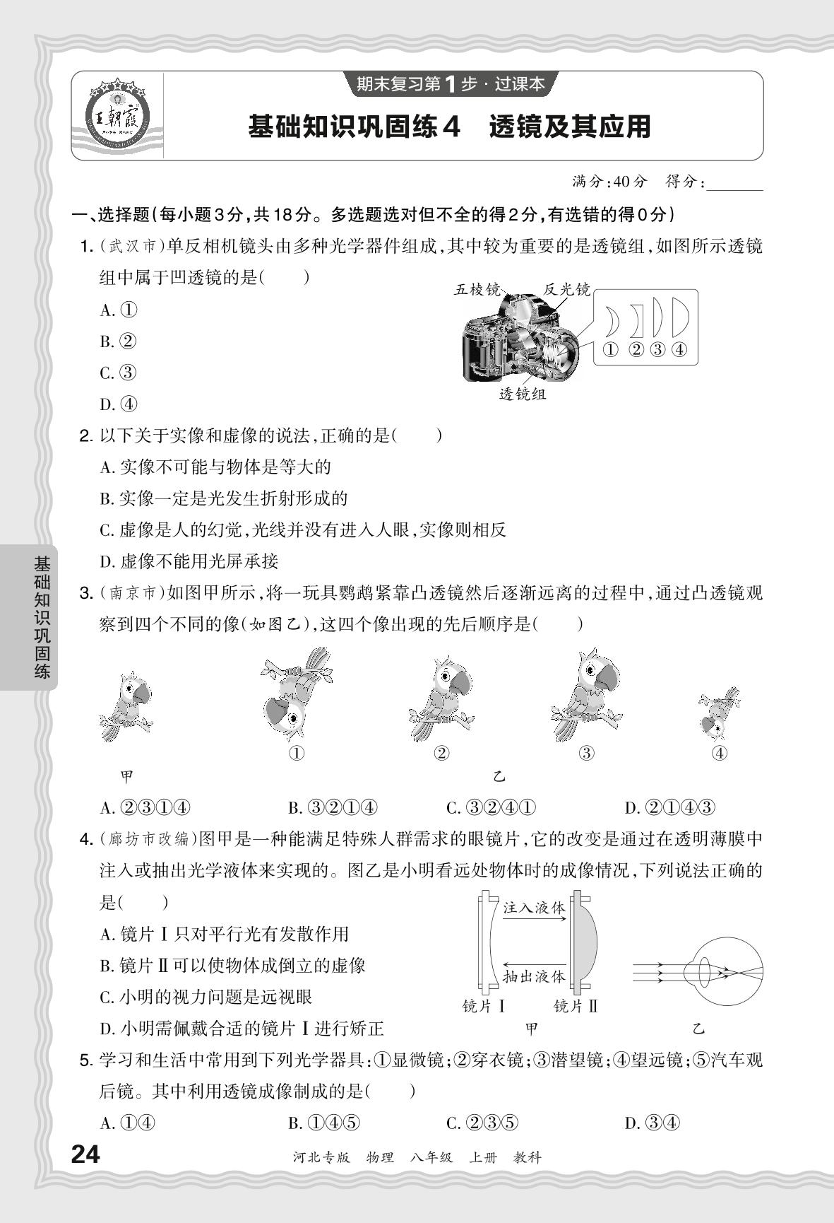 2023秋上册八年级物理教科版 期末过课本·基础知识巩固练 透镜及其应用【4】