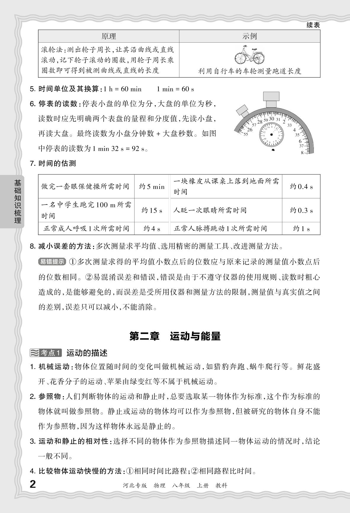 2023秋上册八年级物理教科版 期末过课本·基础知识梳理 第二章 运动与能量