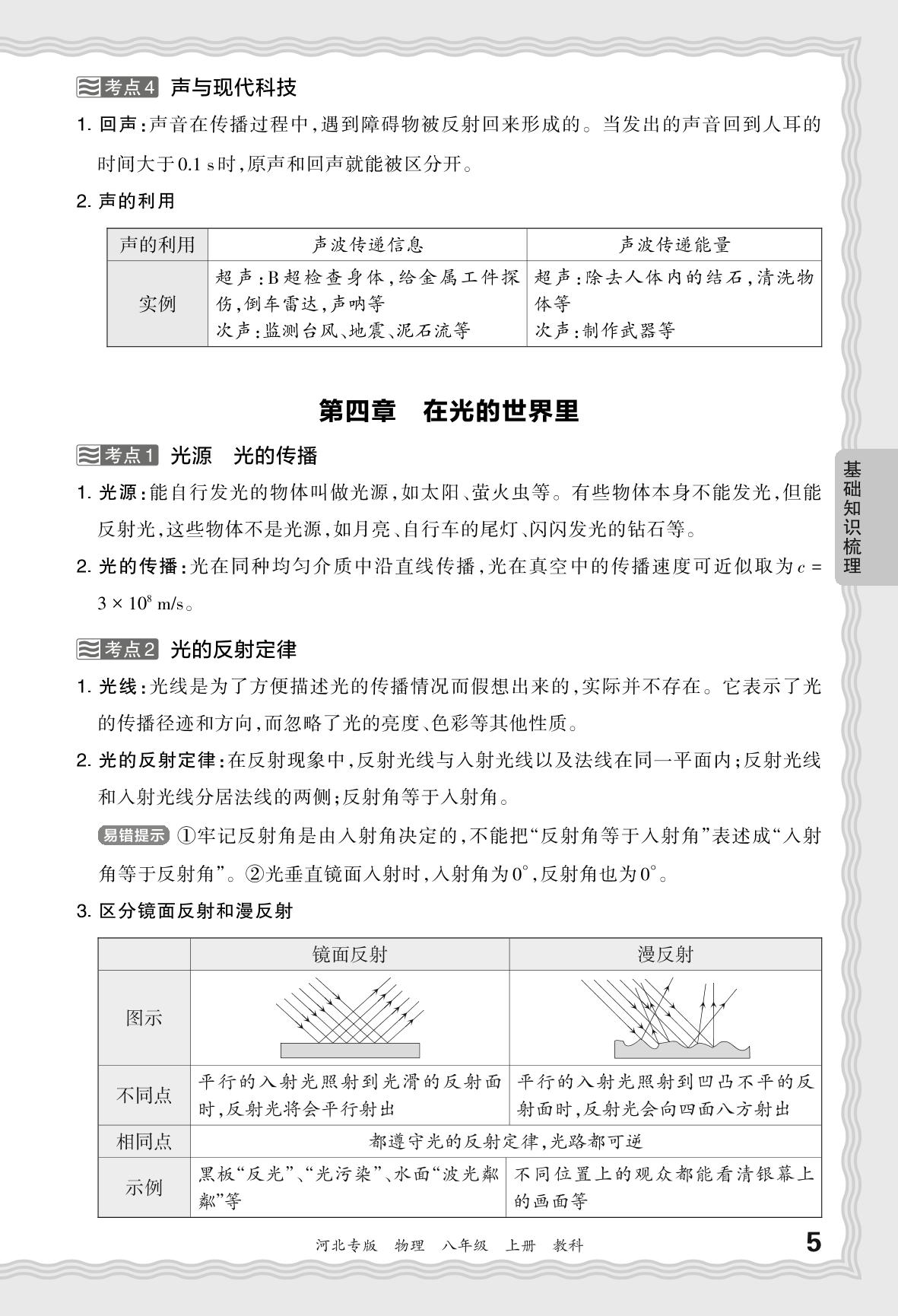 2023秋上册八年级物理教科版 期末过课本·基础知识梳理 第四章 在光的世界里