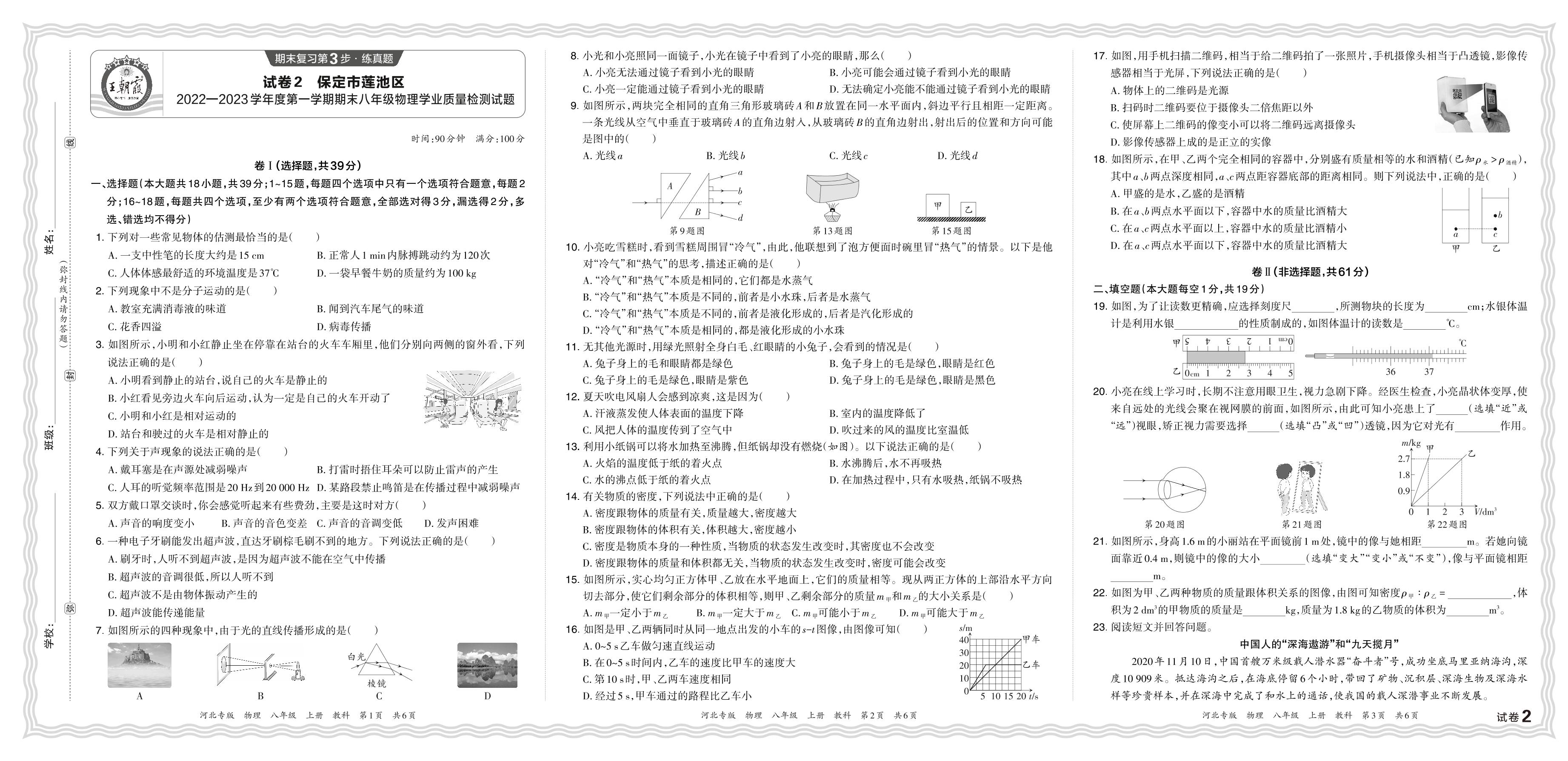 河北省保定市莲池区2022—2023学年度第一学期期末八年级物理学业质量检测试题(教科版)【2】