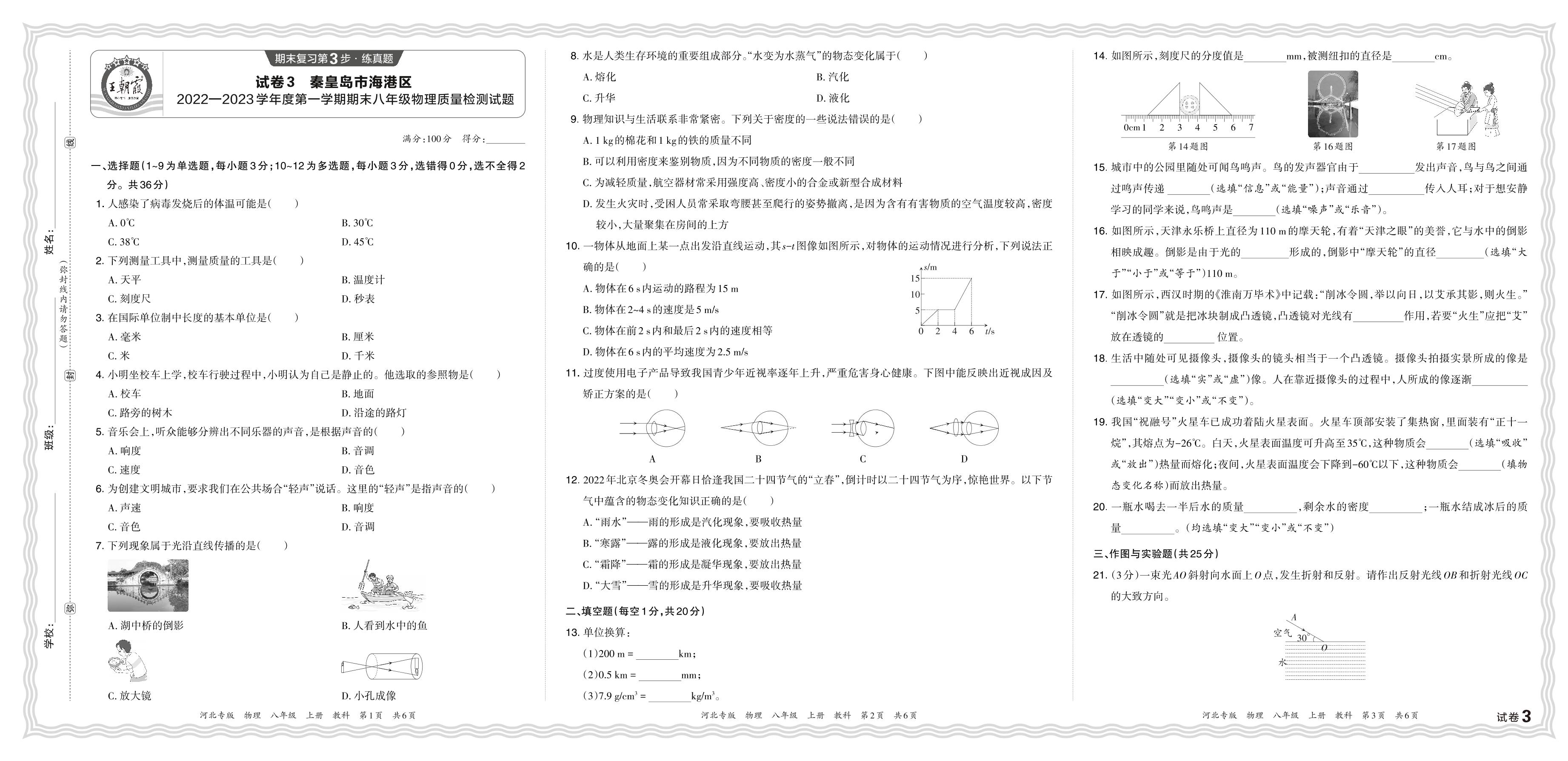 河北省秦皇岛市海港区2022—2023学年度第一学期期末八年级物理质量检测试题(教科版)【3】