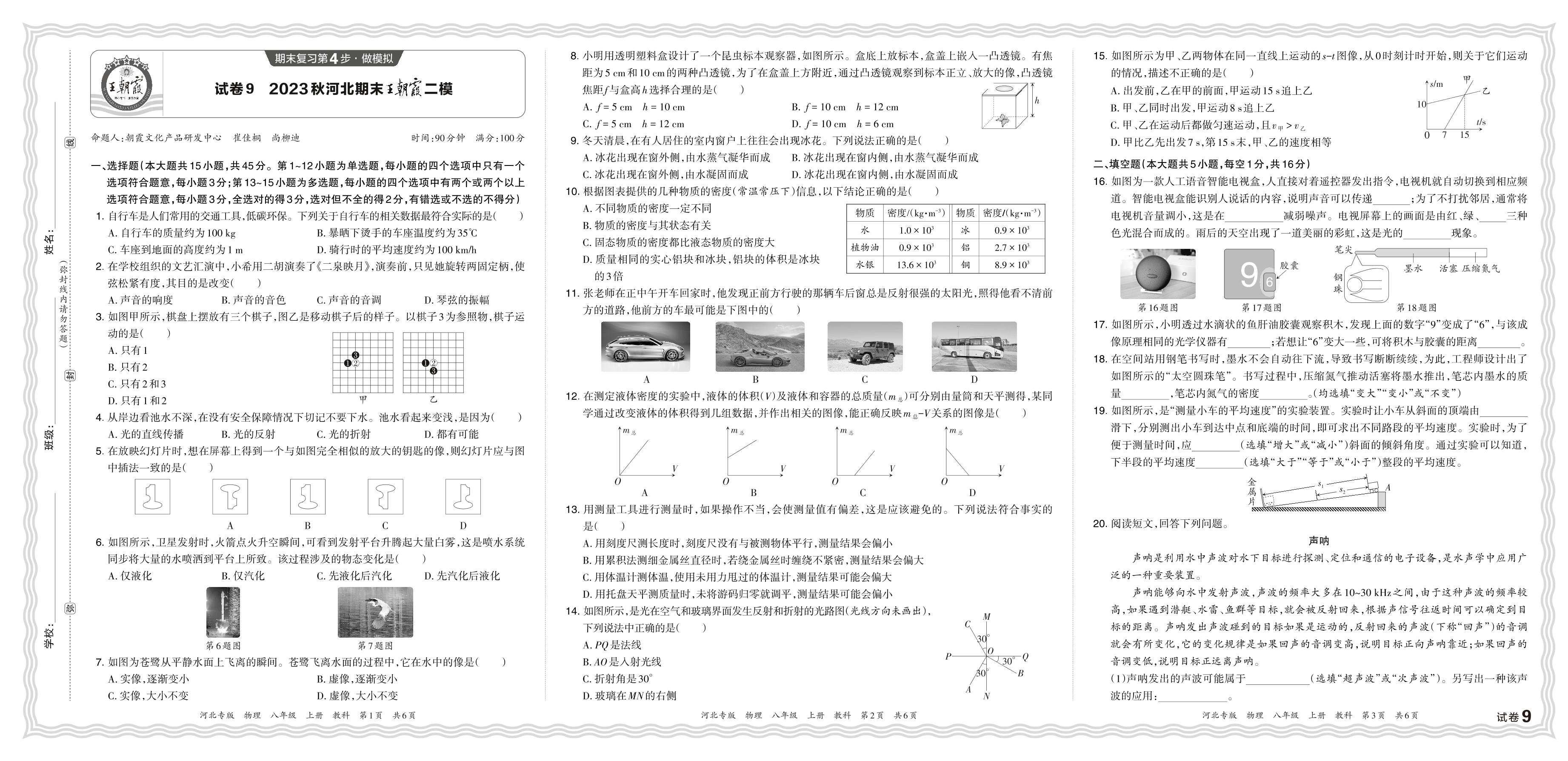 2023秋上册八年级物理教科版 河北期末王朝霞二模