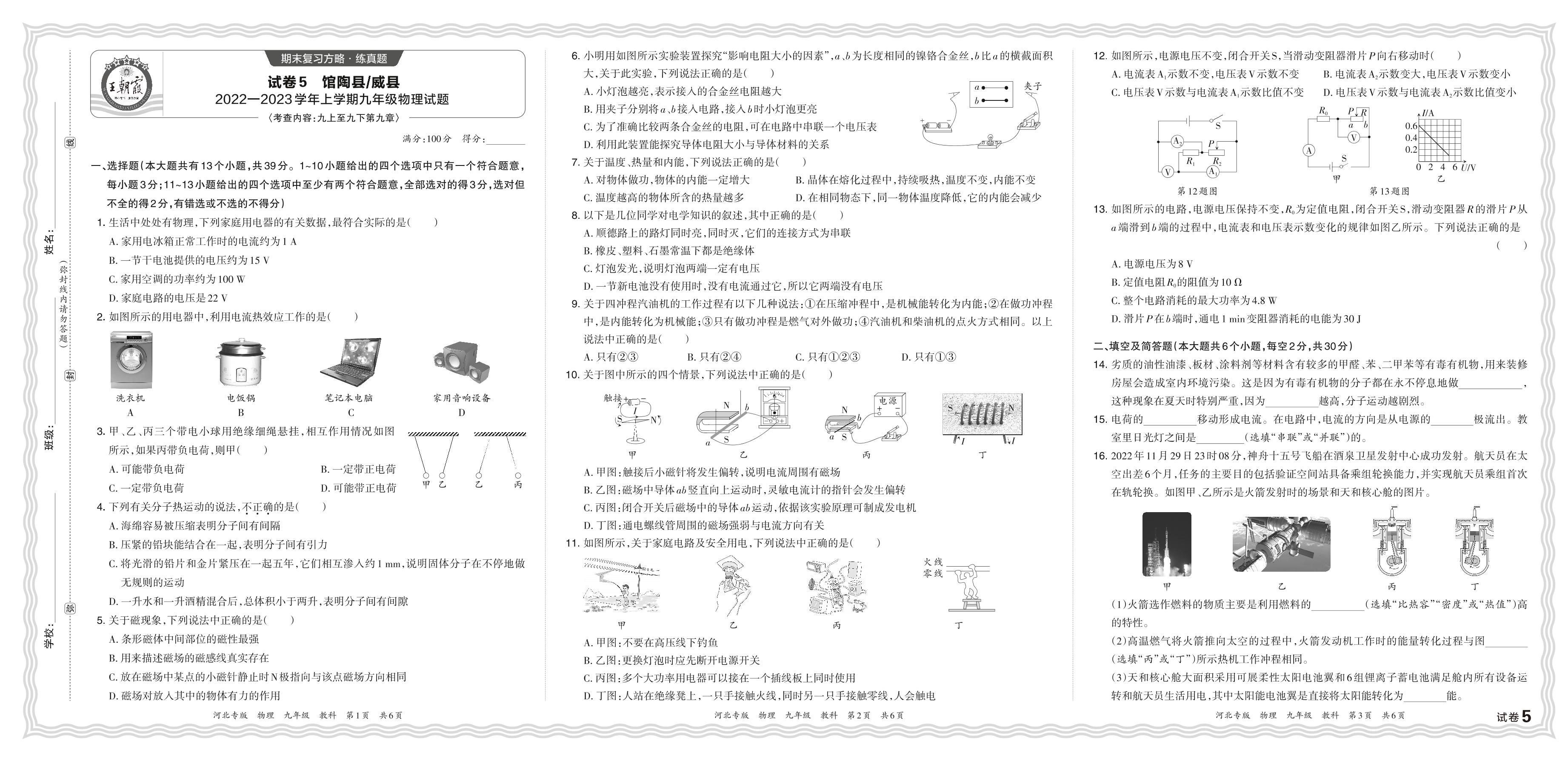 河北省邯郸市馆陶县、邢台市威县2022—2023学年上学期九年级物理试题(教科版)【5】
