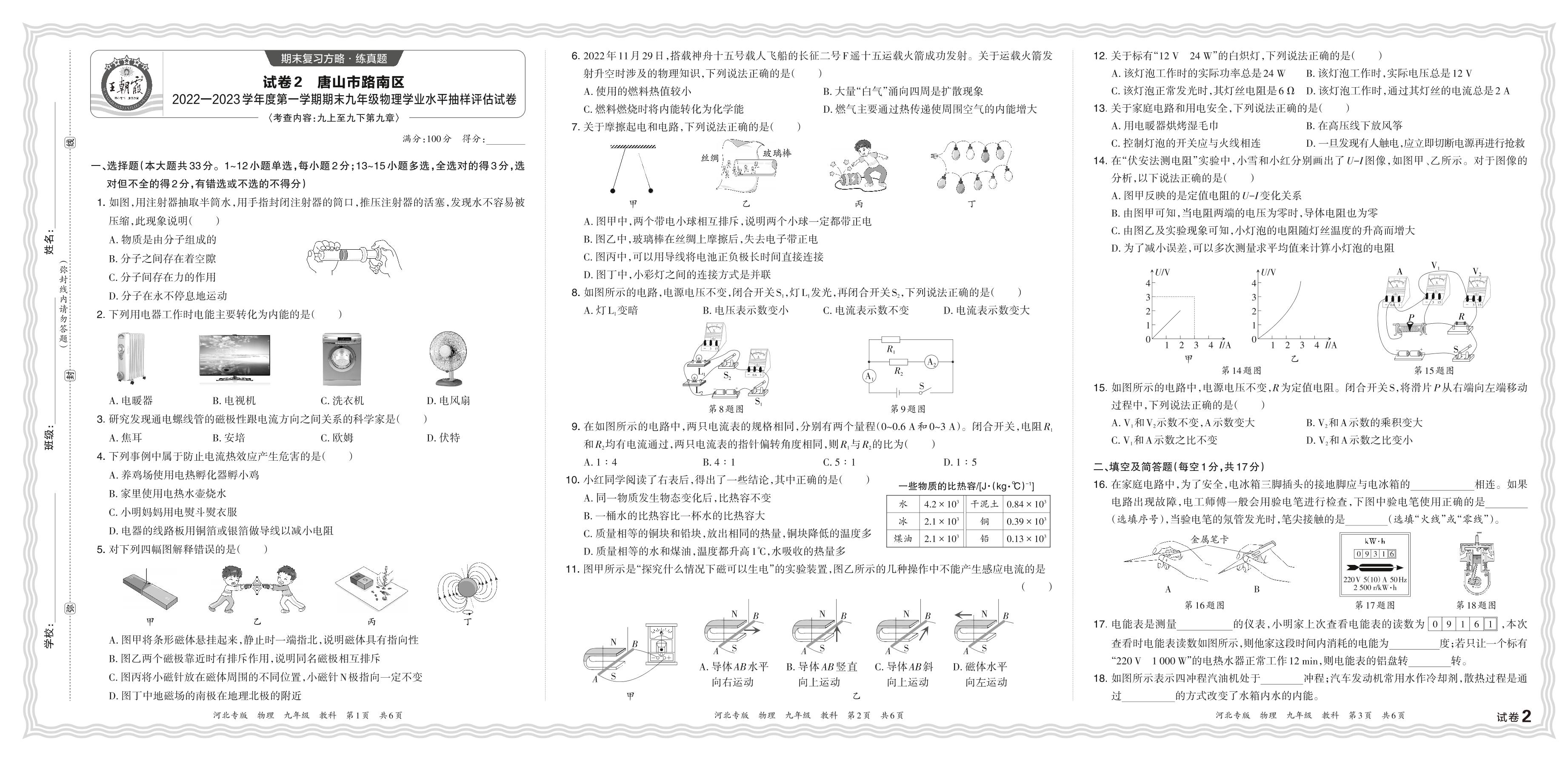 河北省唐山市路南区2022—2023学年度第一学期期末九年级物理学业水平抽样评估试卷(教科版)【2】