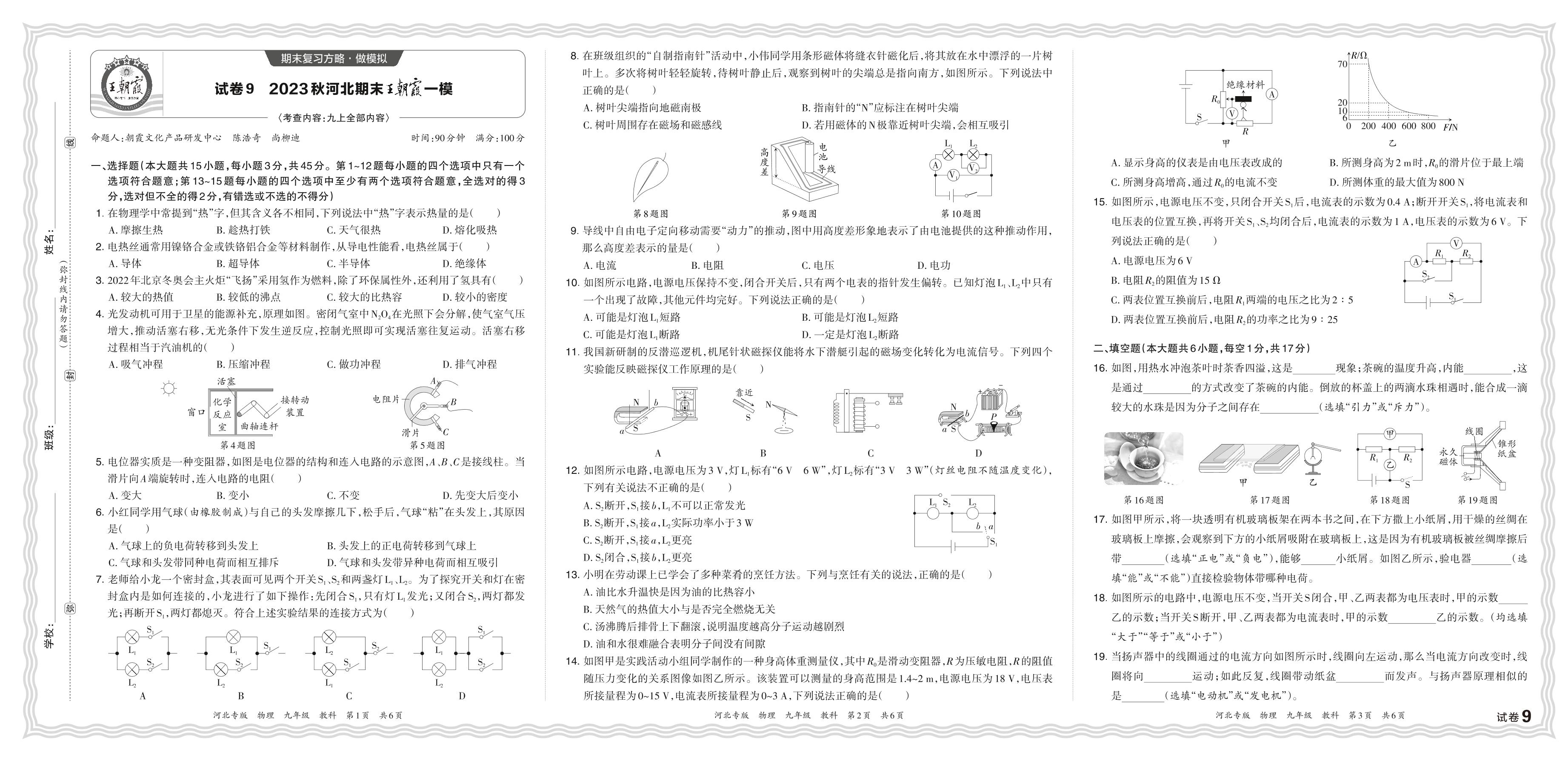 2023秋上册九年级物理教科版 河北期末王朝霞一模