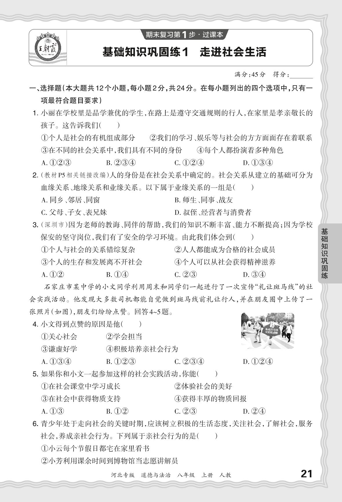 2023秋上册八年级道德与法治人教版 期末过课本·基础知识巩固练 走进社会生活【1】