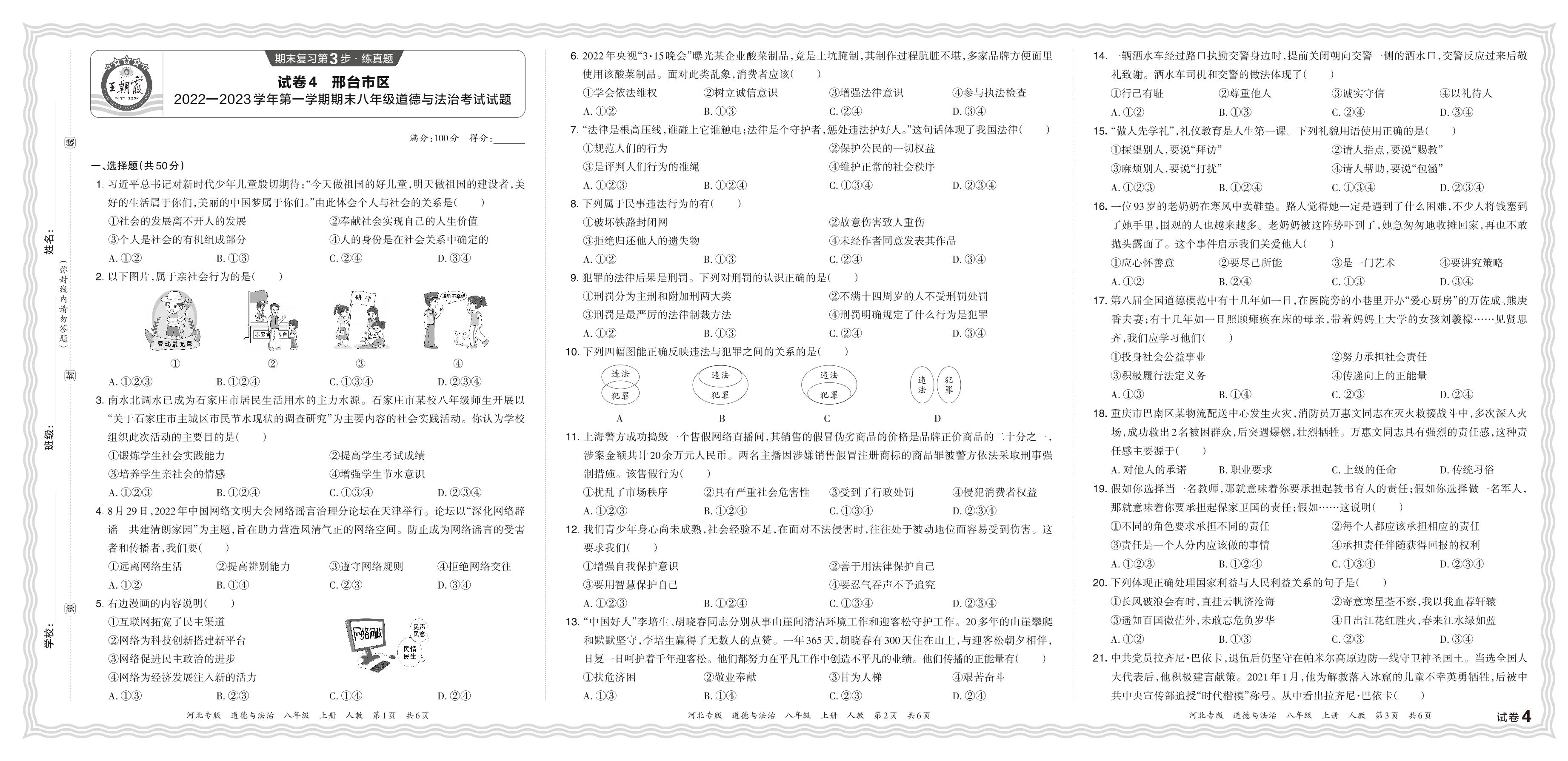 河北省邢台市区2022—2023学年第一学期期末八年级道德与法治考试试题(人教版)【4】