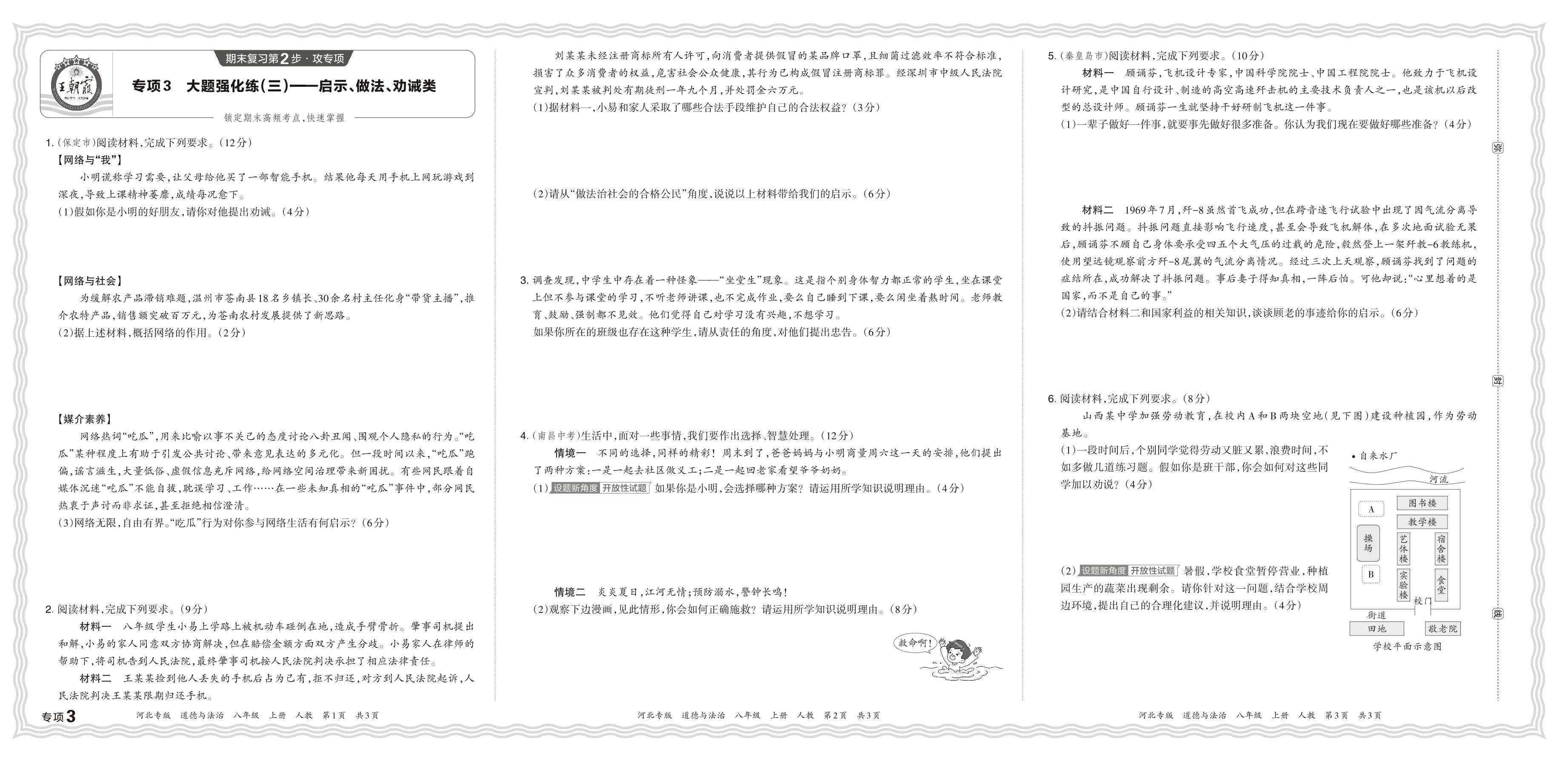 2023秋上册八年级道德与法治人教版 期末专项卷·大题强化练三——启示、做法、劝诫类