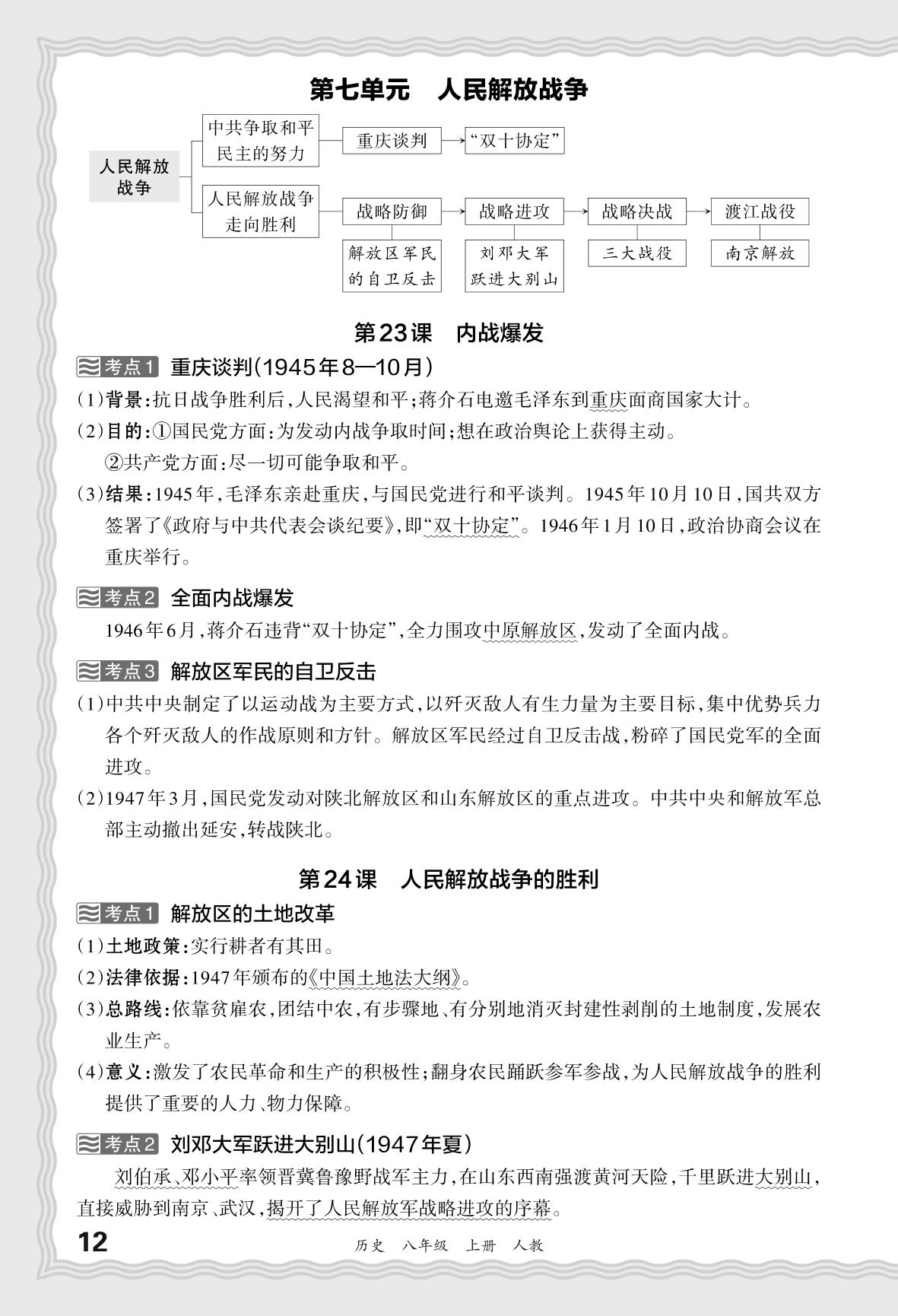 2023秋上册八年级历史人教版 期末过课本·基础知识梳理 第七单元 人民解放战争