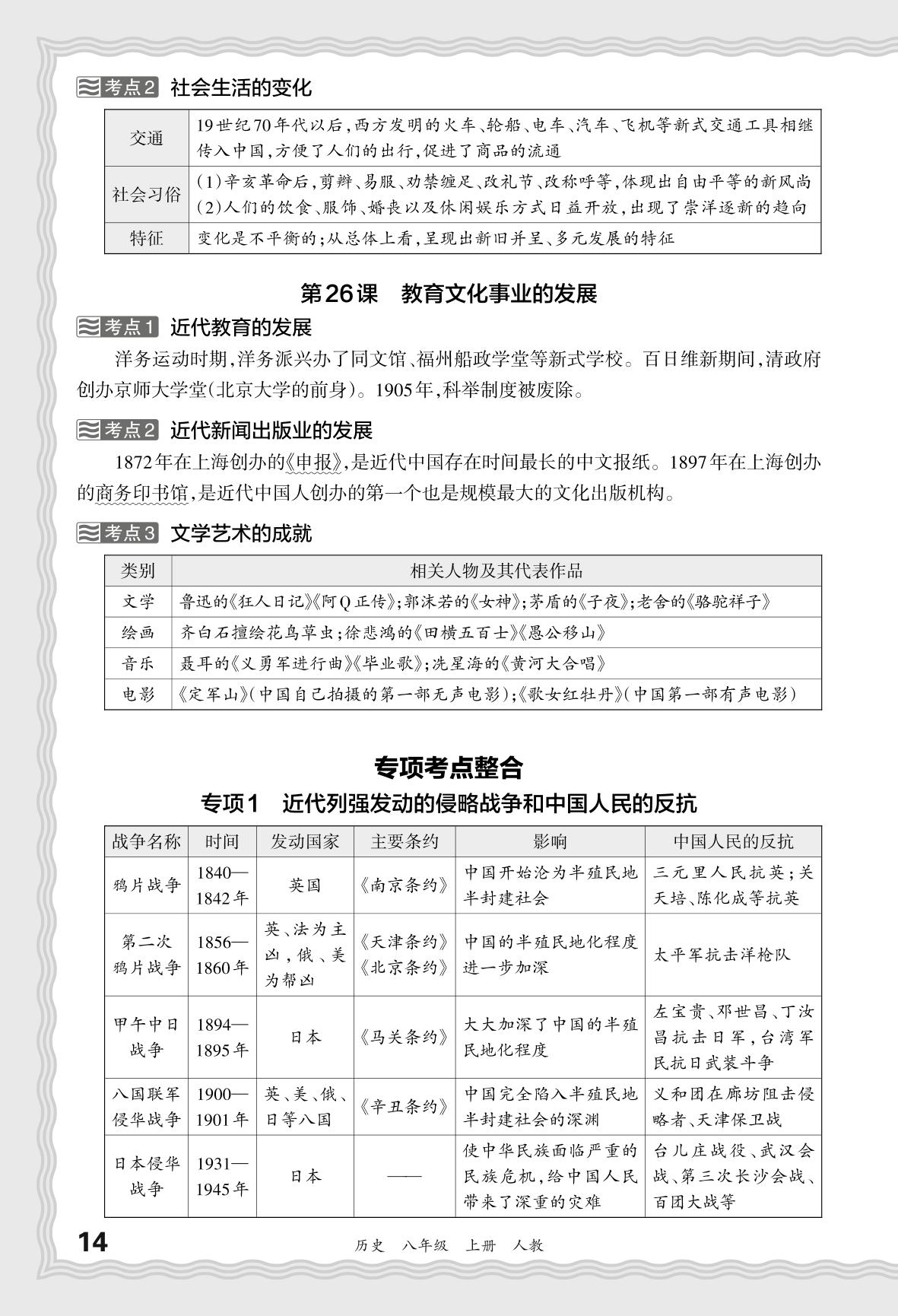 2023秋上册八年级历史人教版 期末过课本·基础知识梳理 专项考点整合