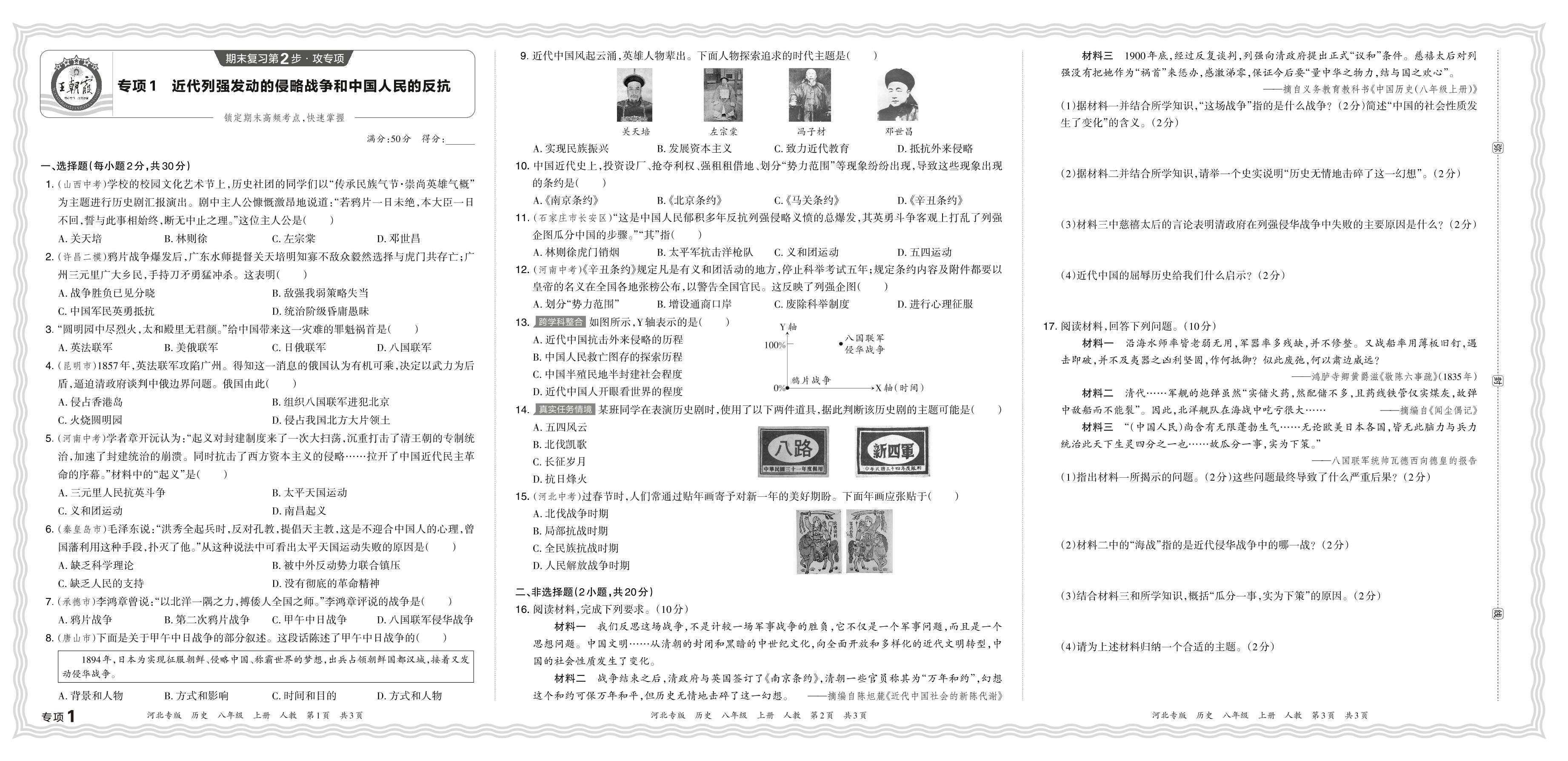 2023秋上册八年级历史人教版 期末专项卷·近代列强发动的侵略战争和中国人民的反抗【1】