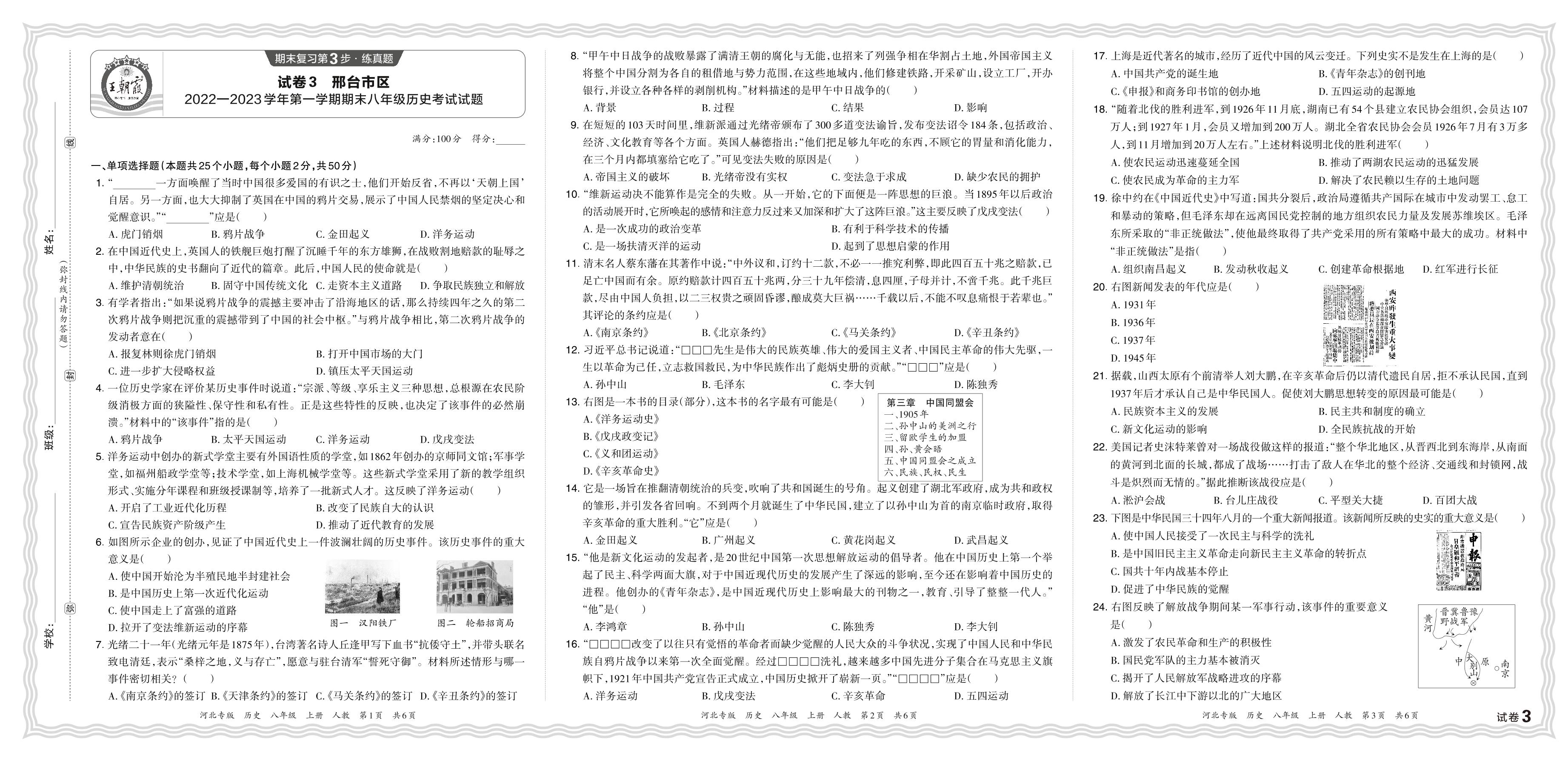 河北省邢台市区2022—2023学年第一学期期末八年级历史考试试题(人教版)【3】