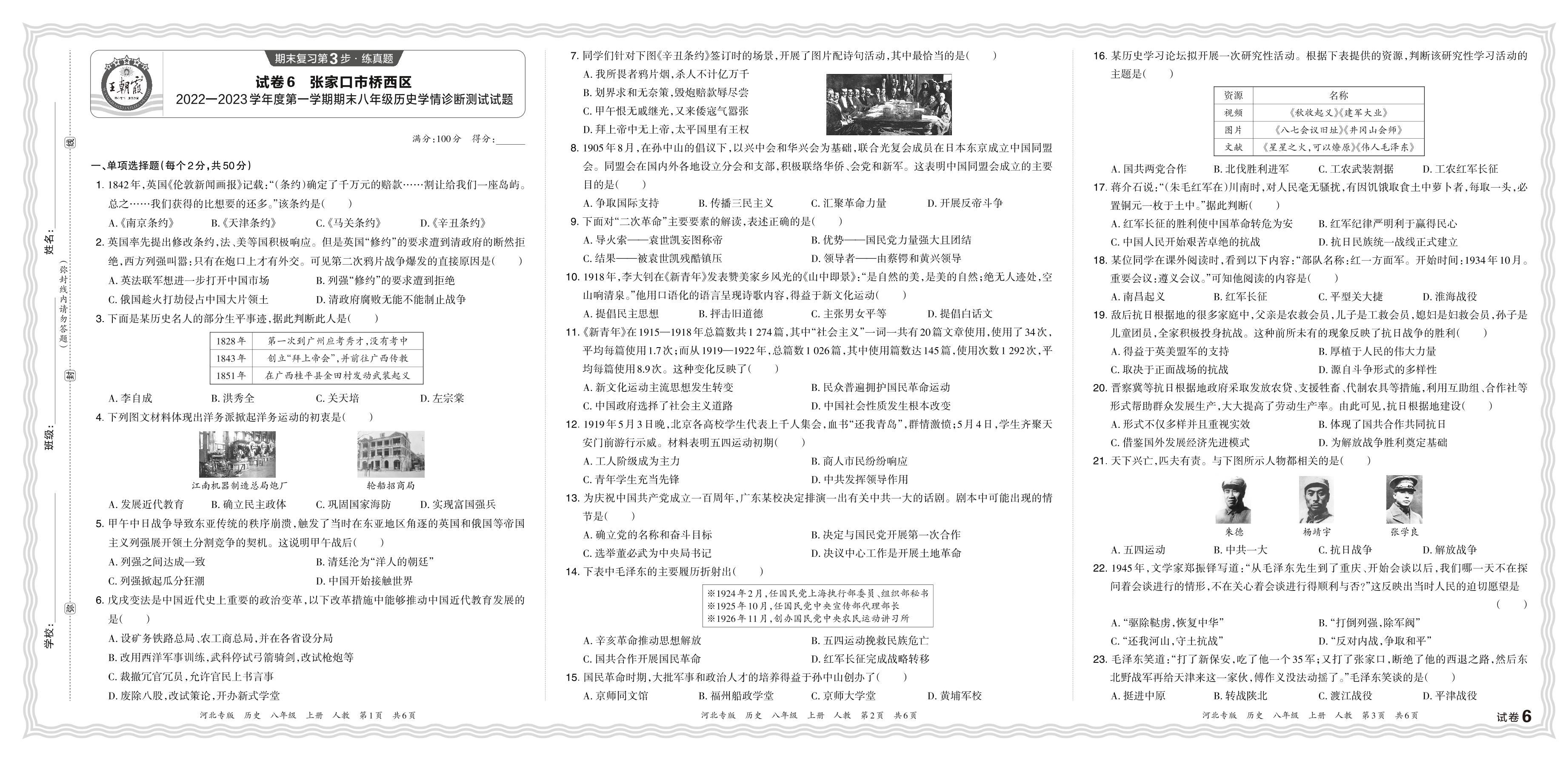河北省张家口市桥西区2022—2023学年度第一学期期末八年级历史学情诊断测试试题(人教版)【6】