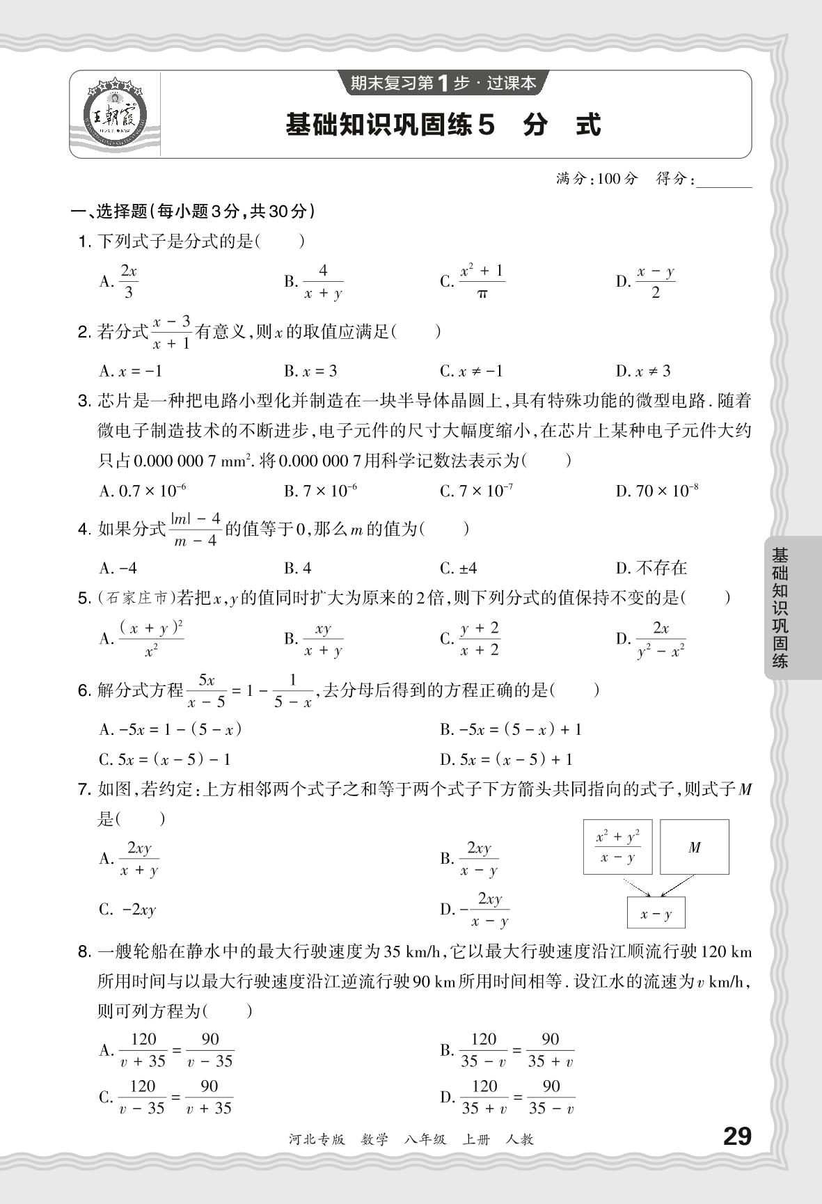 2023秋上册八年级数学人教版 期末过课本·基础知识巩固练 分式_R231124105049082【5】