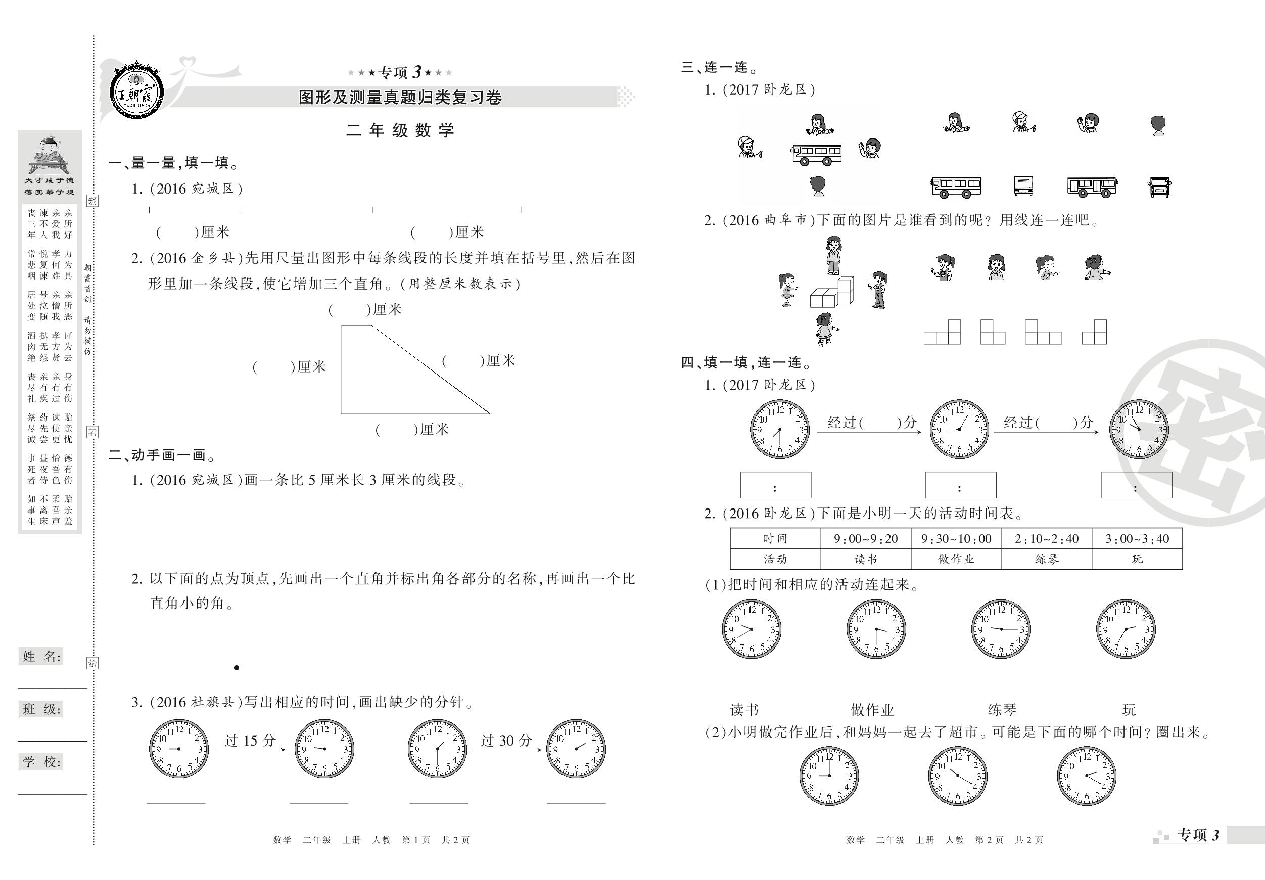 王朝霞期末专项卷——图形及测量、解决问题真题归类复习卷二年级上册数学(人教版)_R210803104132【0】
