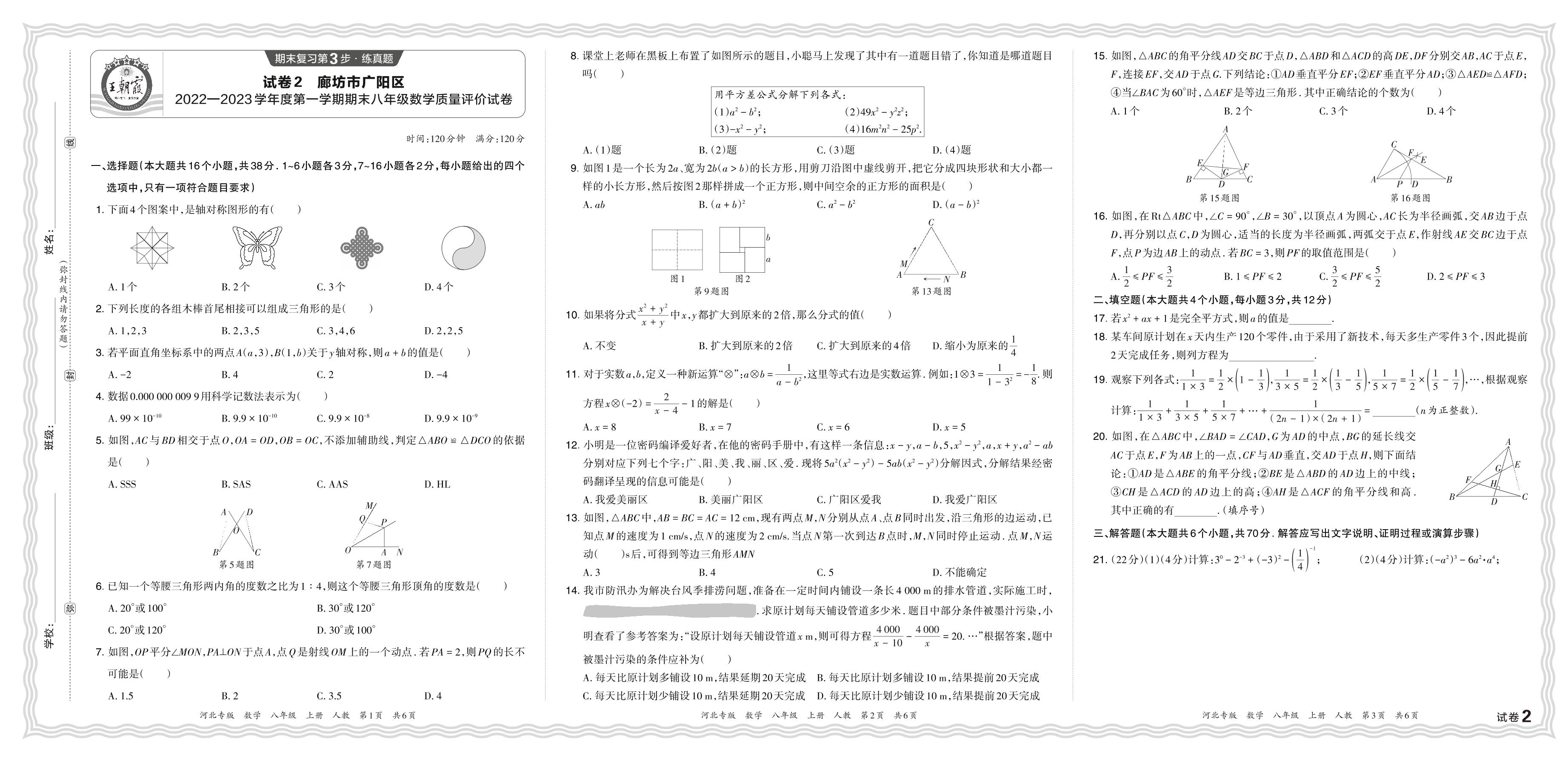 河北省廊坊市广阳区2022—2023学年度第一学期期末八年级数学质量评价试卷(人教版)【2】