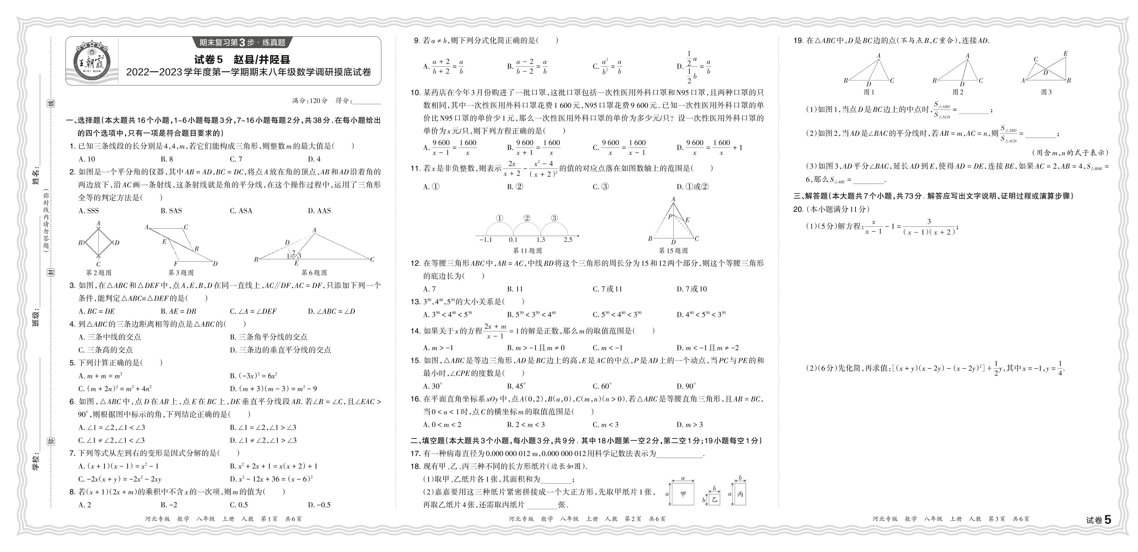 河北省石家庄市赵县、井陉县2022—2023学年度第一学期期末八年级数学调研摸底试卷(人教版)【5】