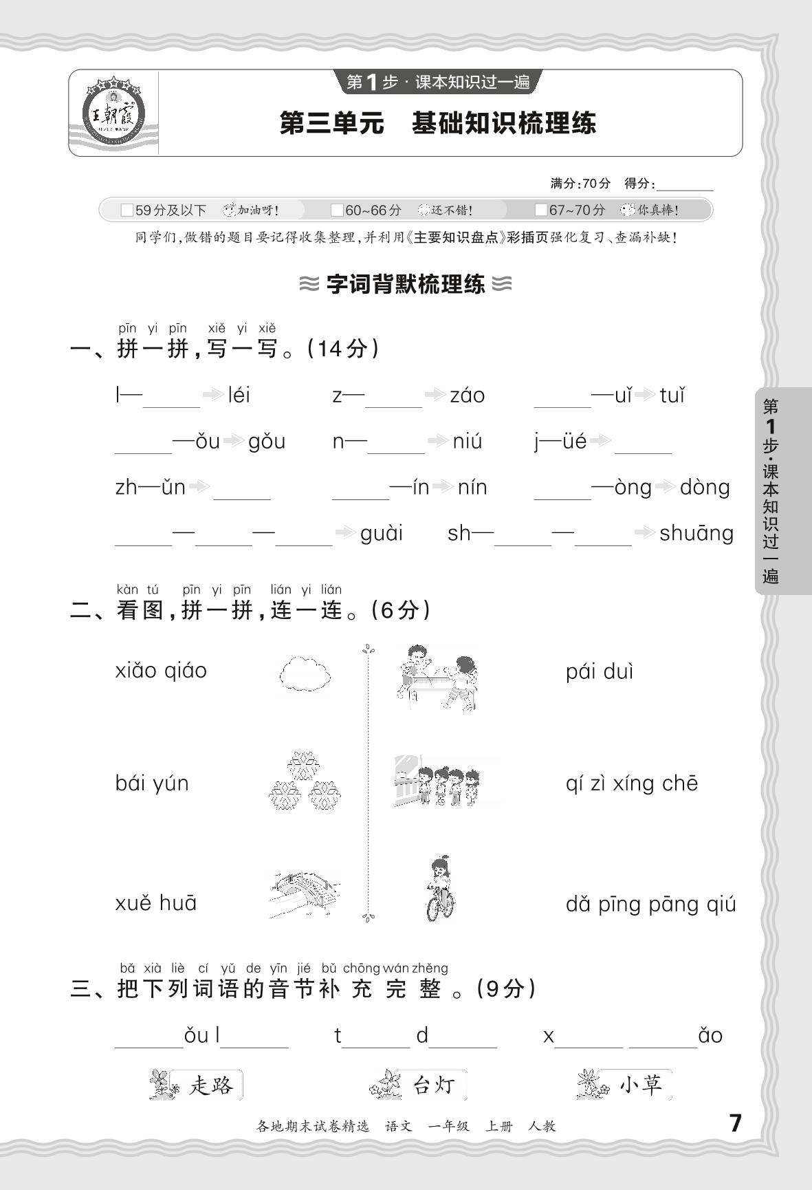 2023秋上册一年级语文人教版 期末过课本JX版·第三单元 基础知识梳理练