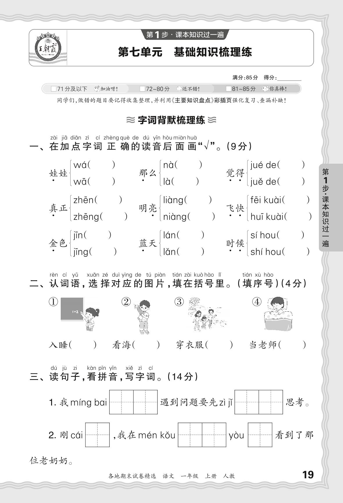 2023秋上册一年级语文人教版 期末过课本JX版·第七单元 基础知识梳理练