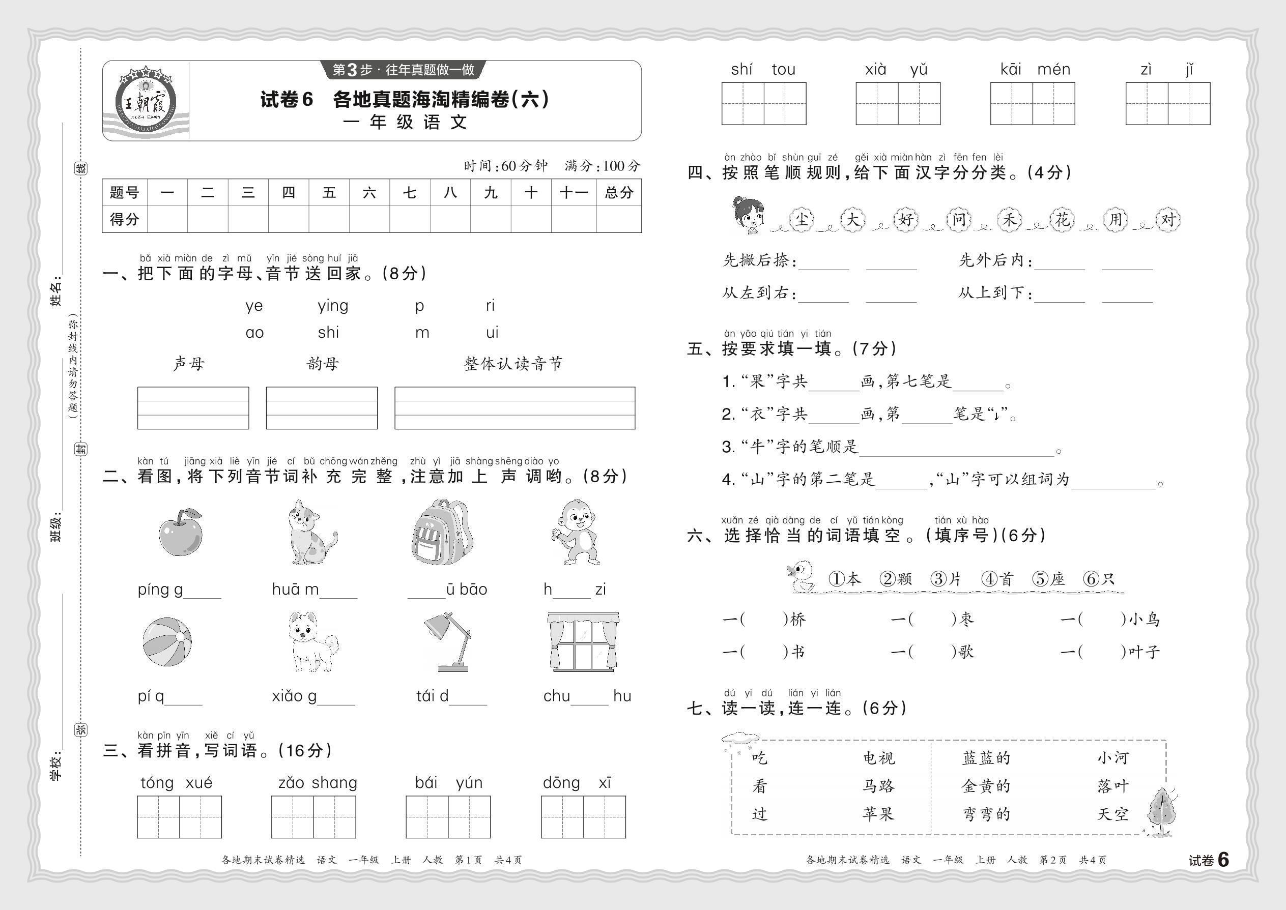 2023秋上册一年级语文人教版 各地真题海淘精编卷(六)JX