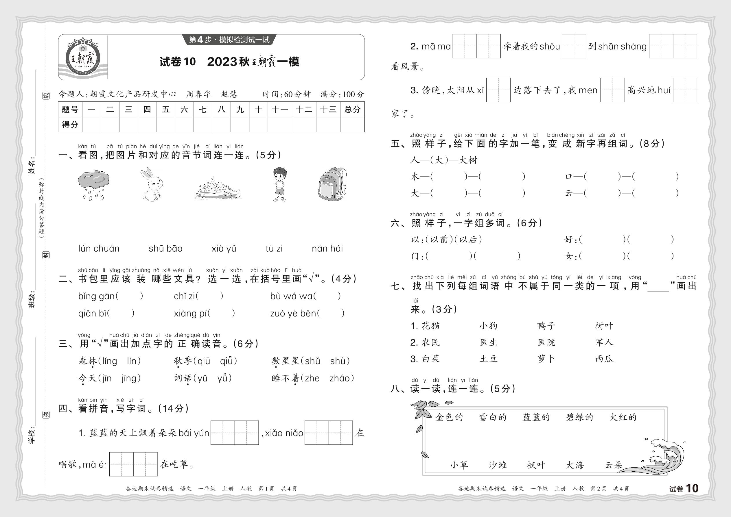 2023秋上册一年级语文人教版 王朝霞一模JX
