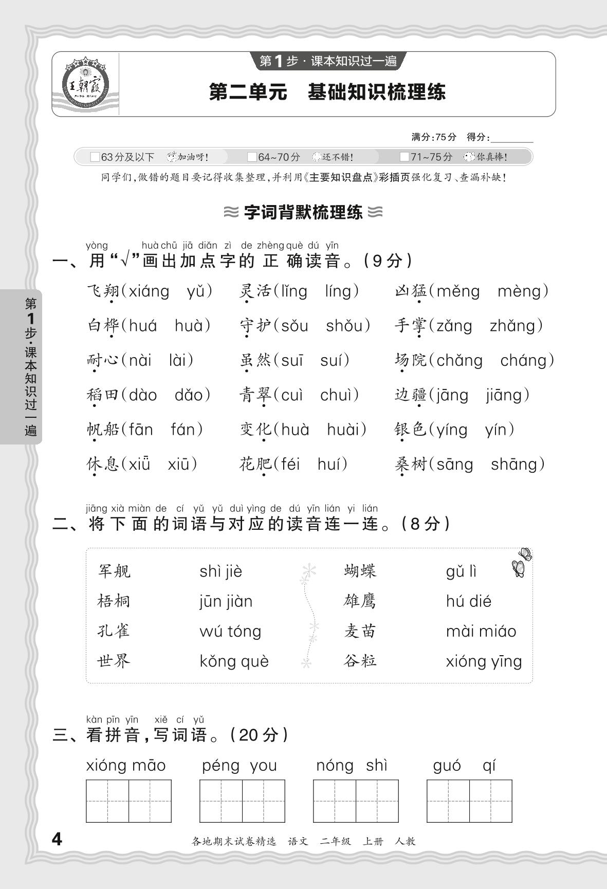2023秋上册二年级语文人教版 期末过课本JX版·第二单元 基础知识梳理练