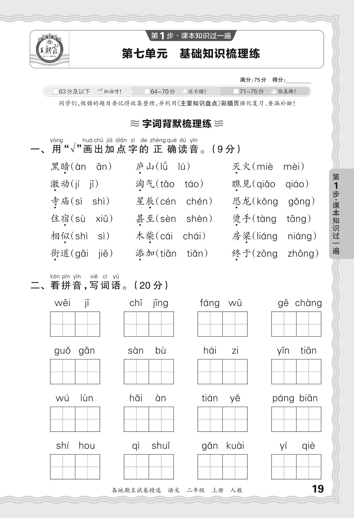 2023秋上册二年级语文人教版 期末过课本JX版·第七单元 基础知识梳理练