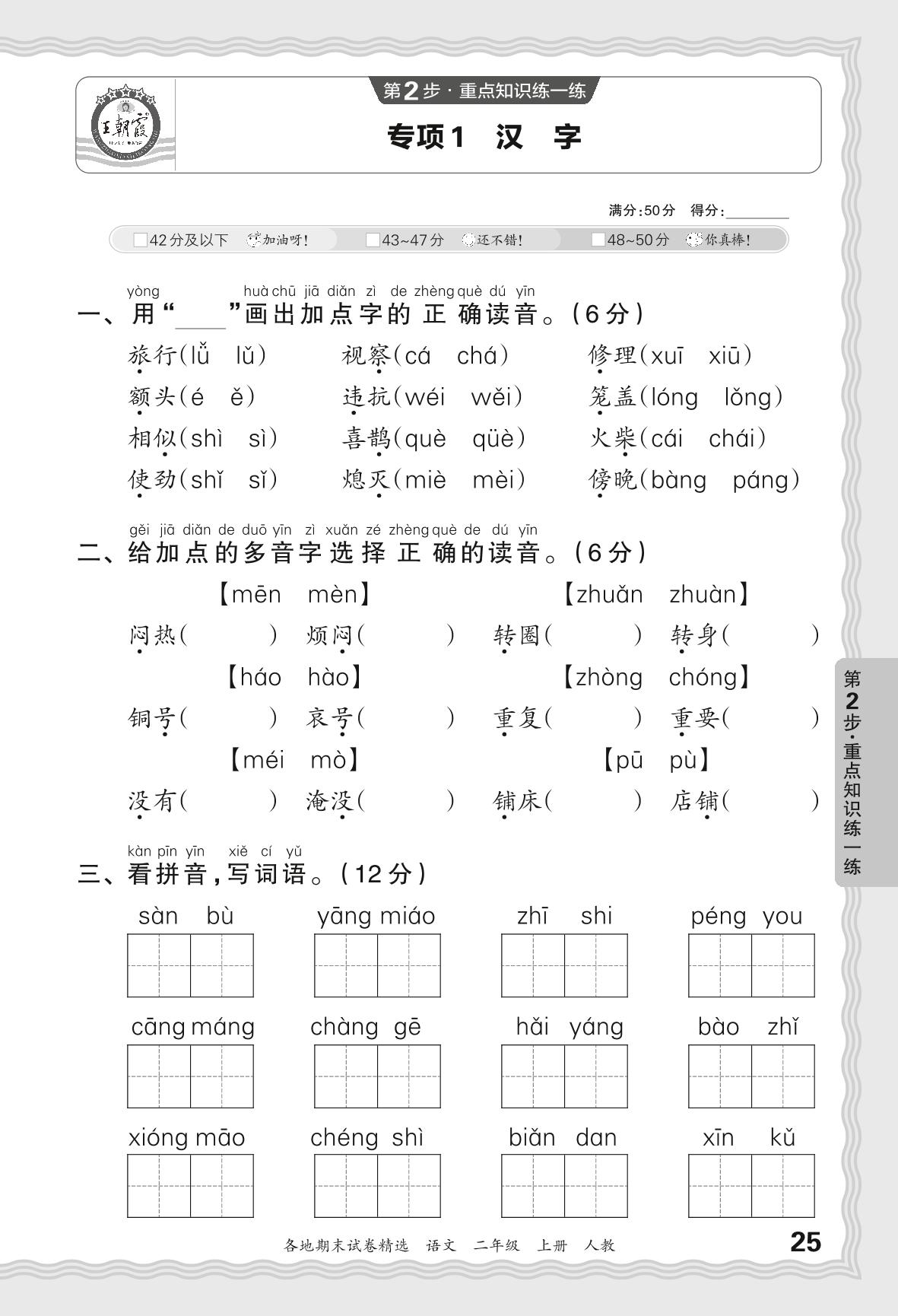 2023秋上册二年级语文人教版 期末专项卷JX版·汉字【1】
