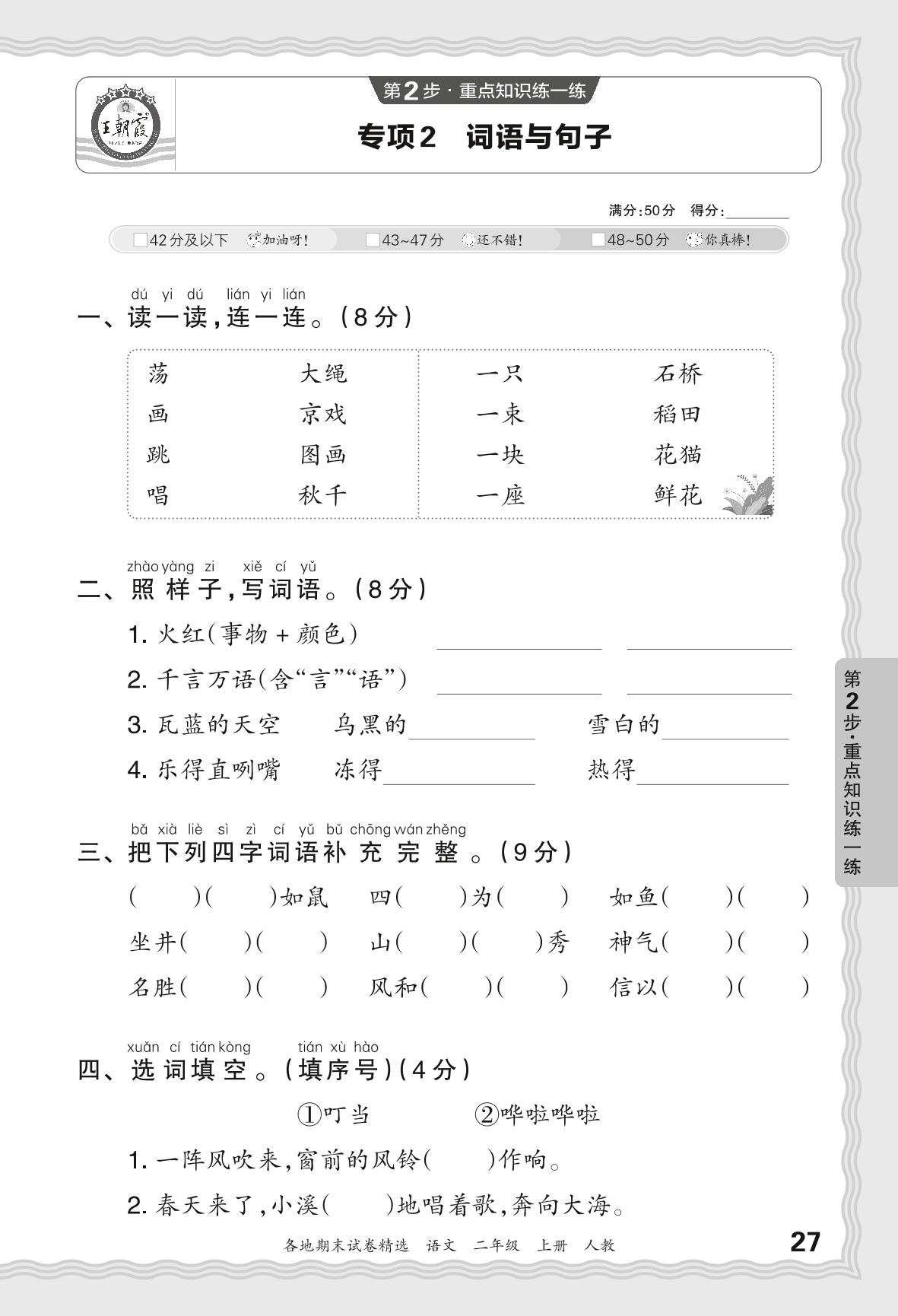 2023秋上册二年级语文人教版 期末专项卷JX版·词语与句子【2】