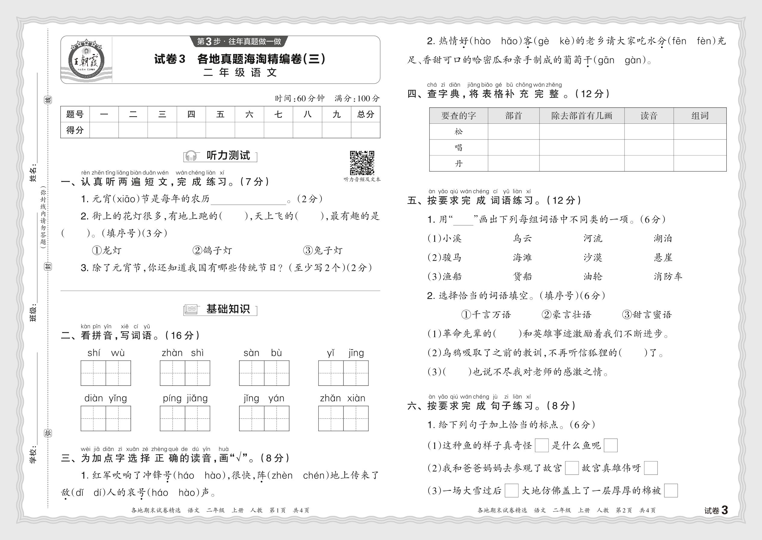 2023秋上册二年级语文人教版 各地真题海淘精编卷(三)JX