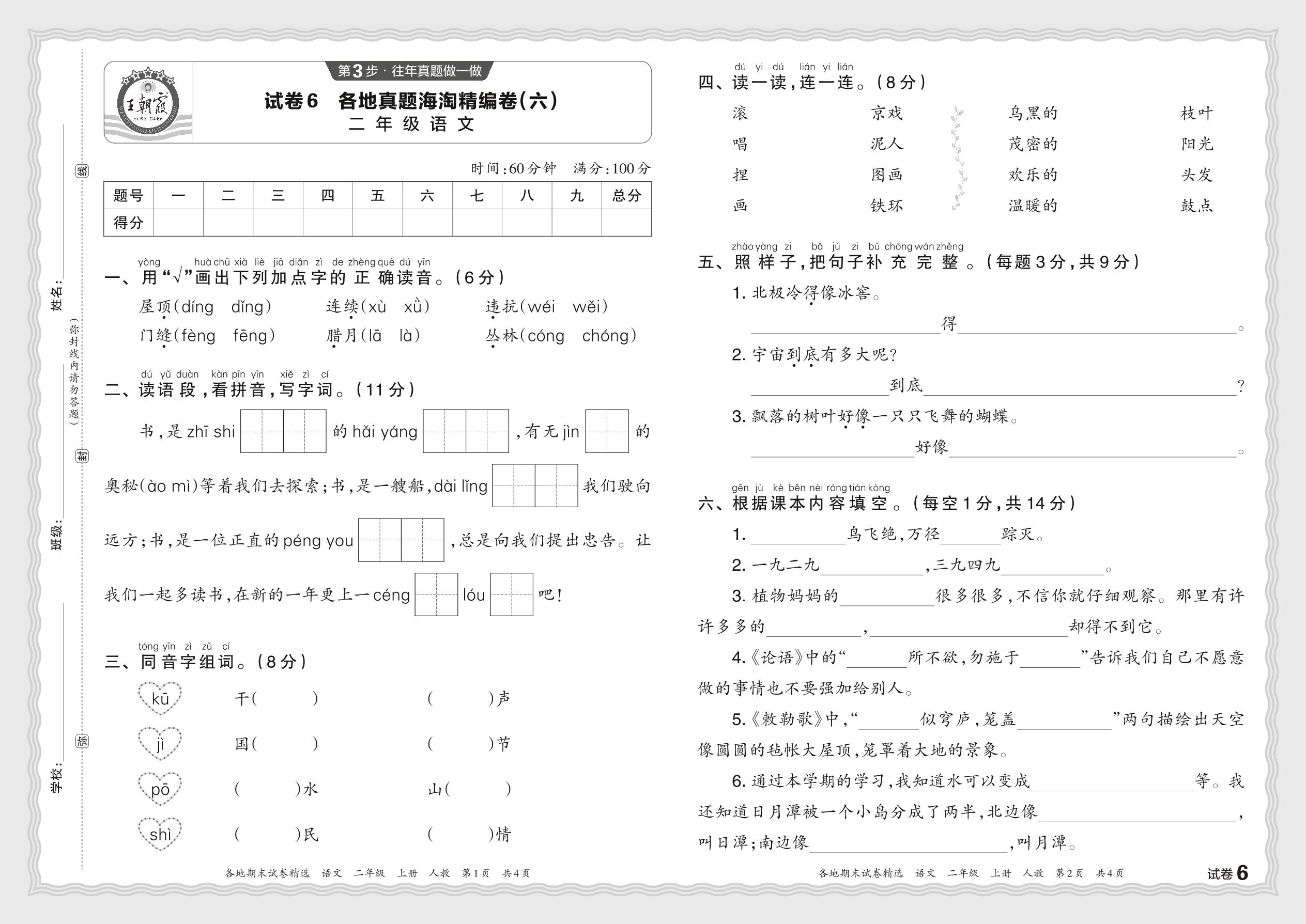 2023秋上册二年级语文人教版 各地真题海淘精编卷(六)JX