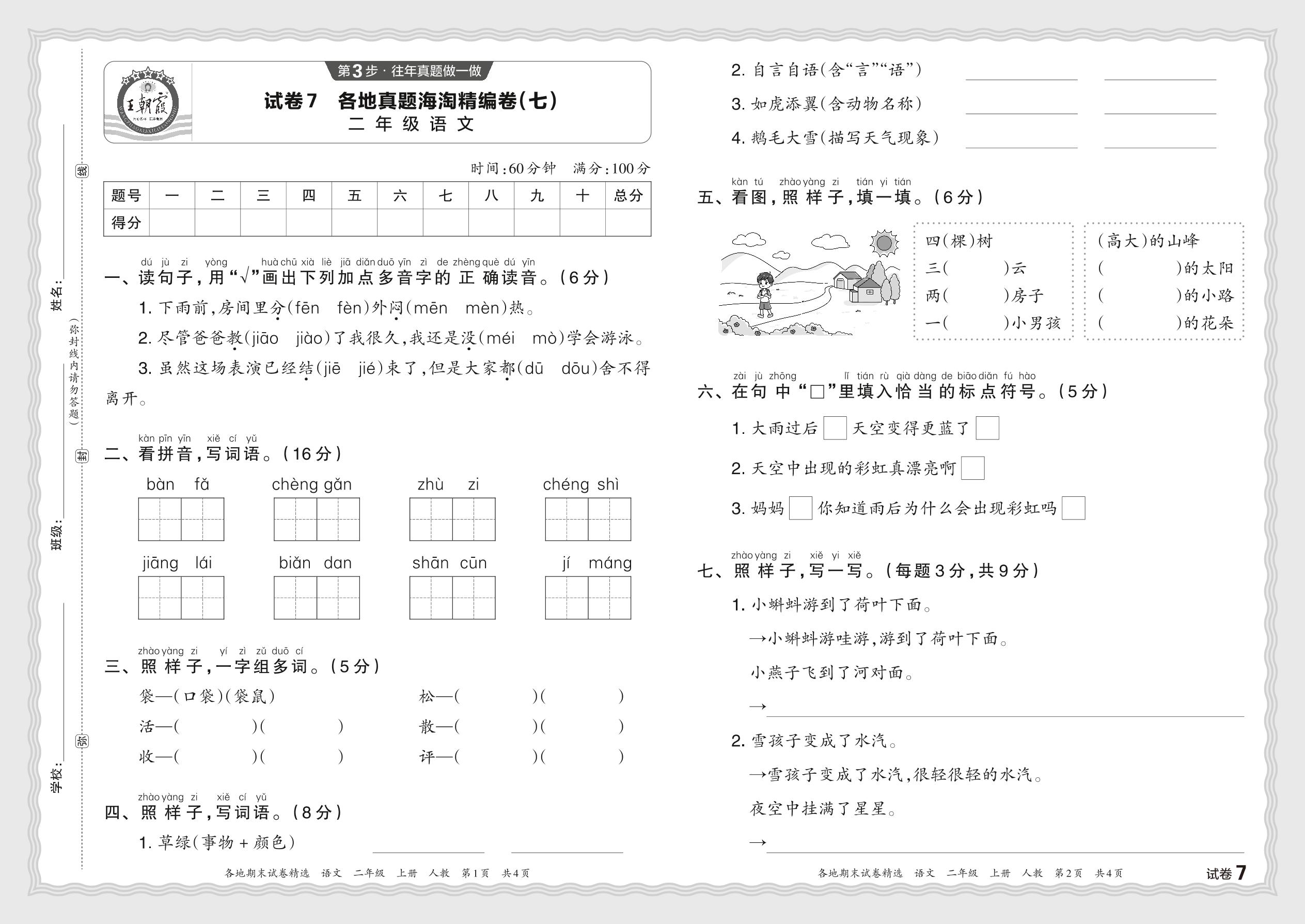 2023秋上册二年级语文人教版 各地真题海淘精编卷(七)JX