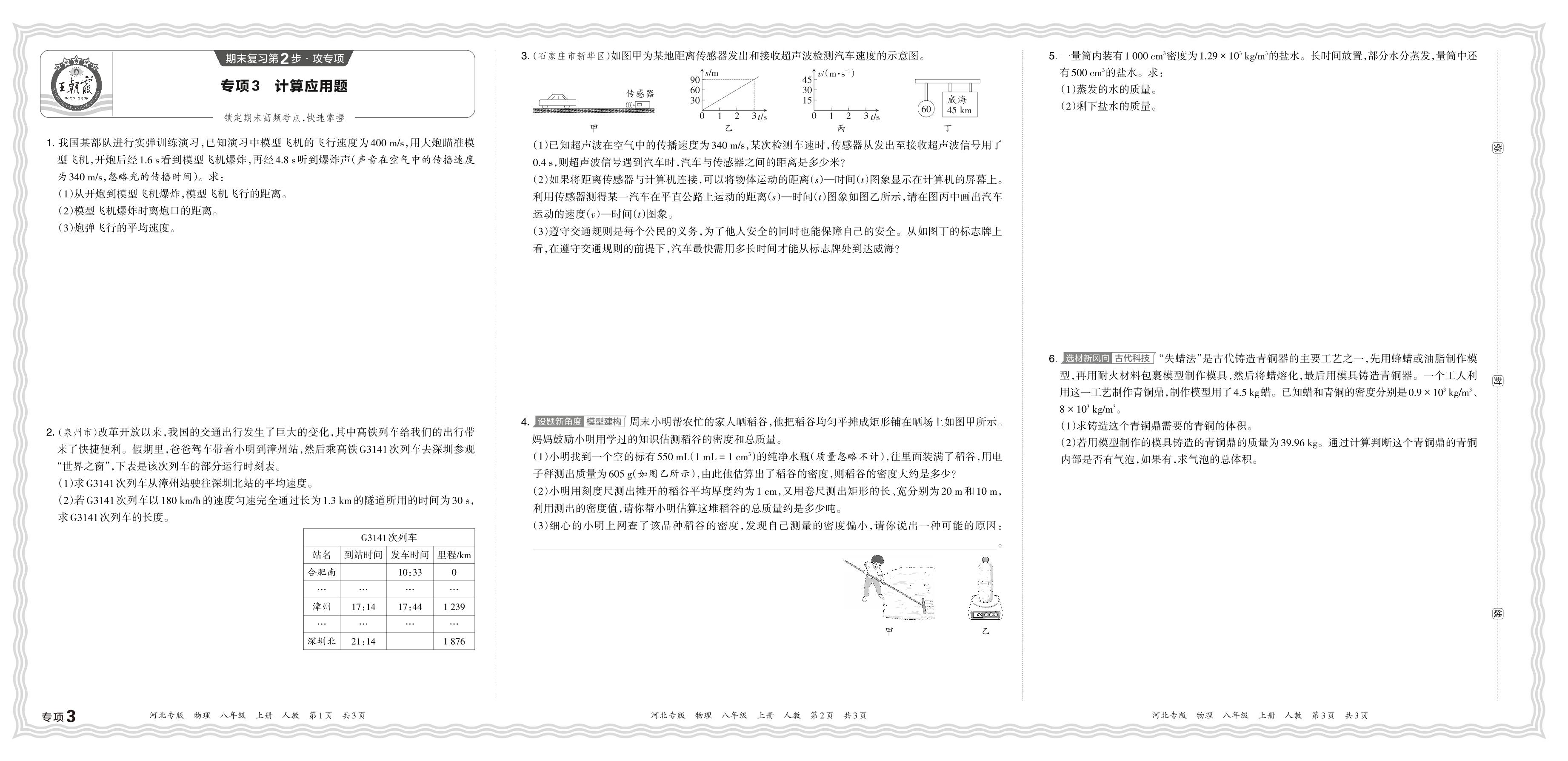 2023秋上册八年级物理人教版 期末专项卷·计算应用题