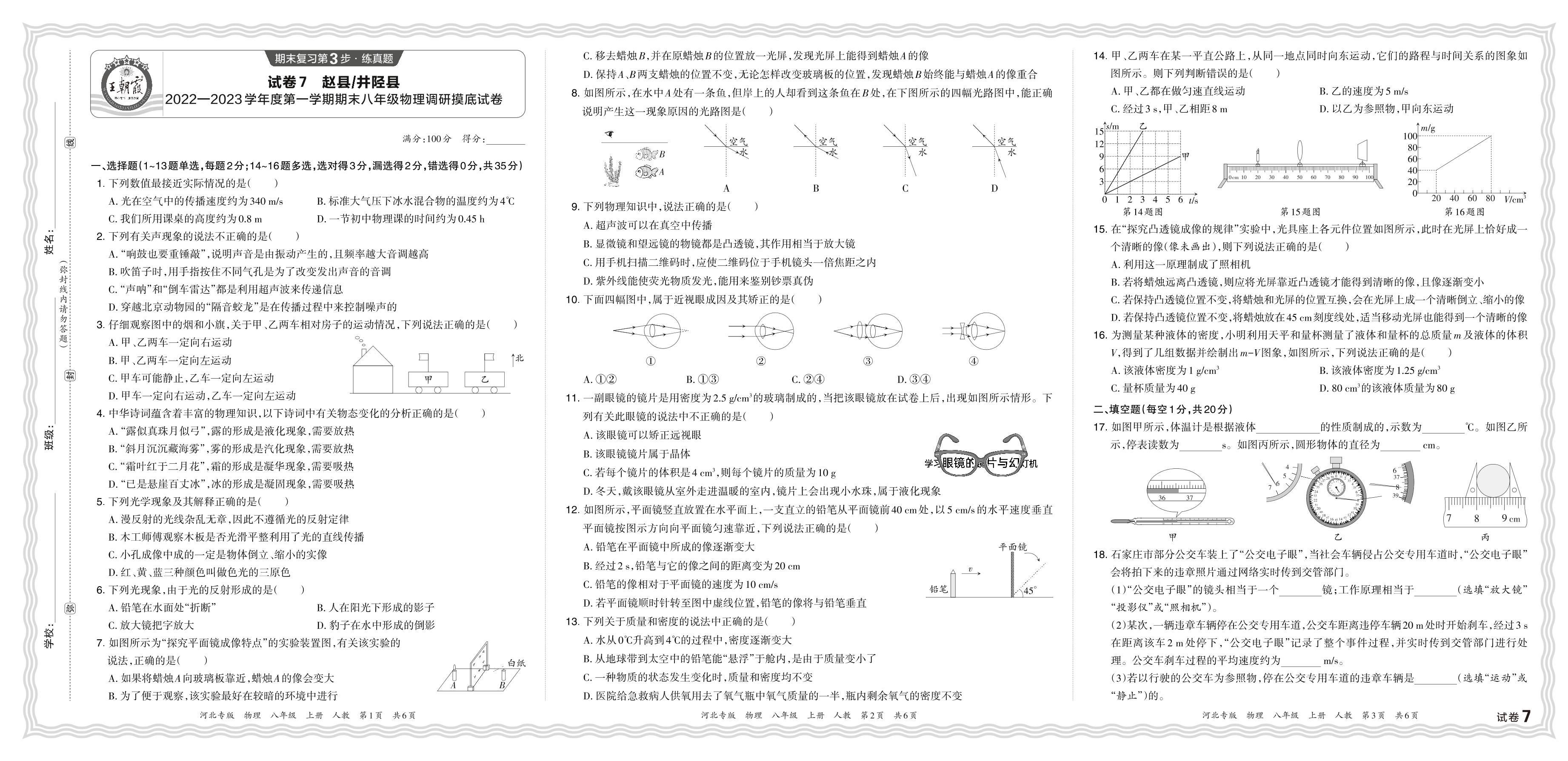 河北省石家庄市赵县、井陉县2022—2023学年度第一学期期末八年级物理调研摸底试卷(人教版)【7】