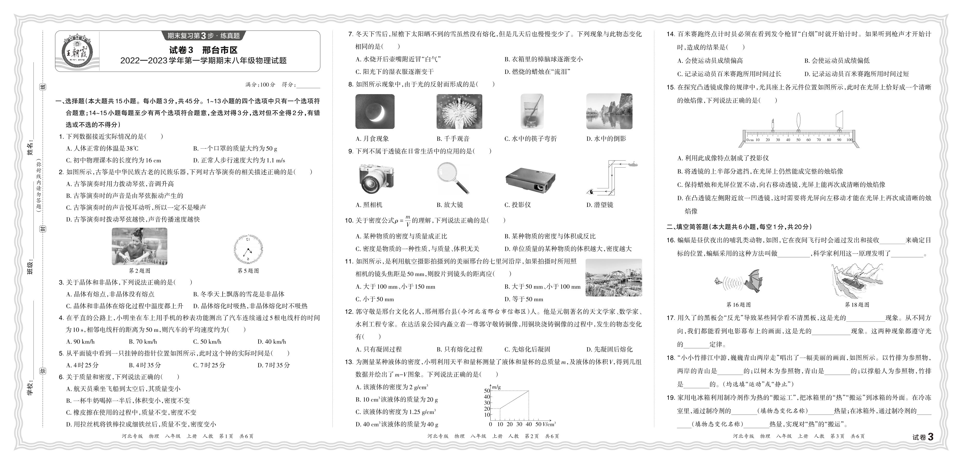 河北省邢台市区2022—2023学年第一学期期末八年级物理试题(人教版)【3】