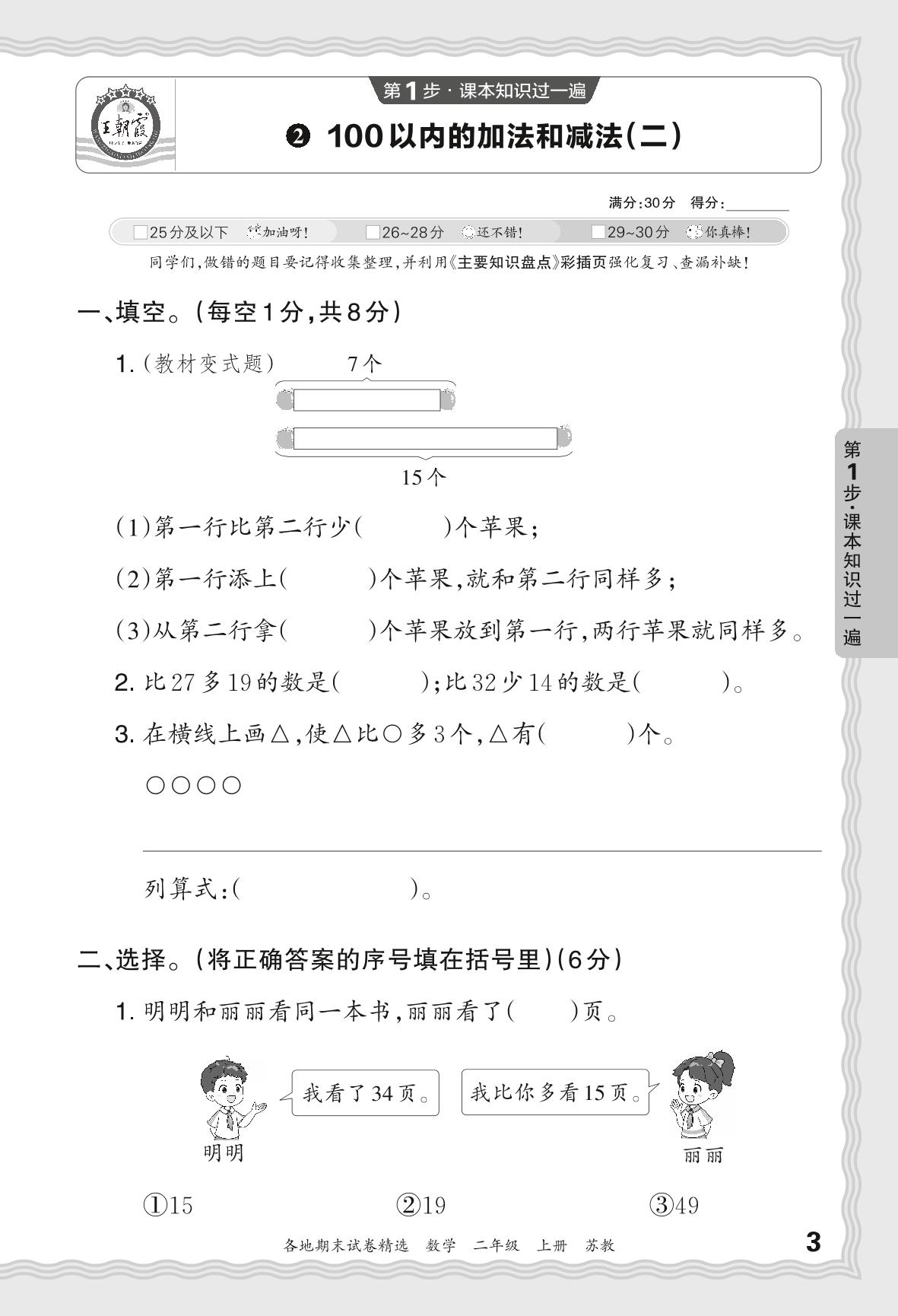 2023秋上册二年级数学苏教版 期末过课本JX版·100以内的加法和减法(二)【2】