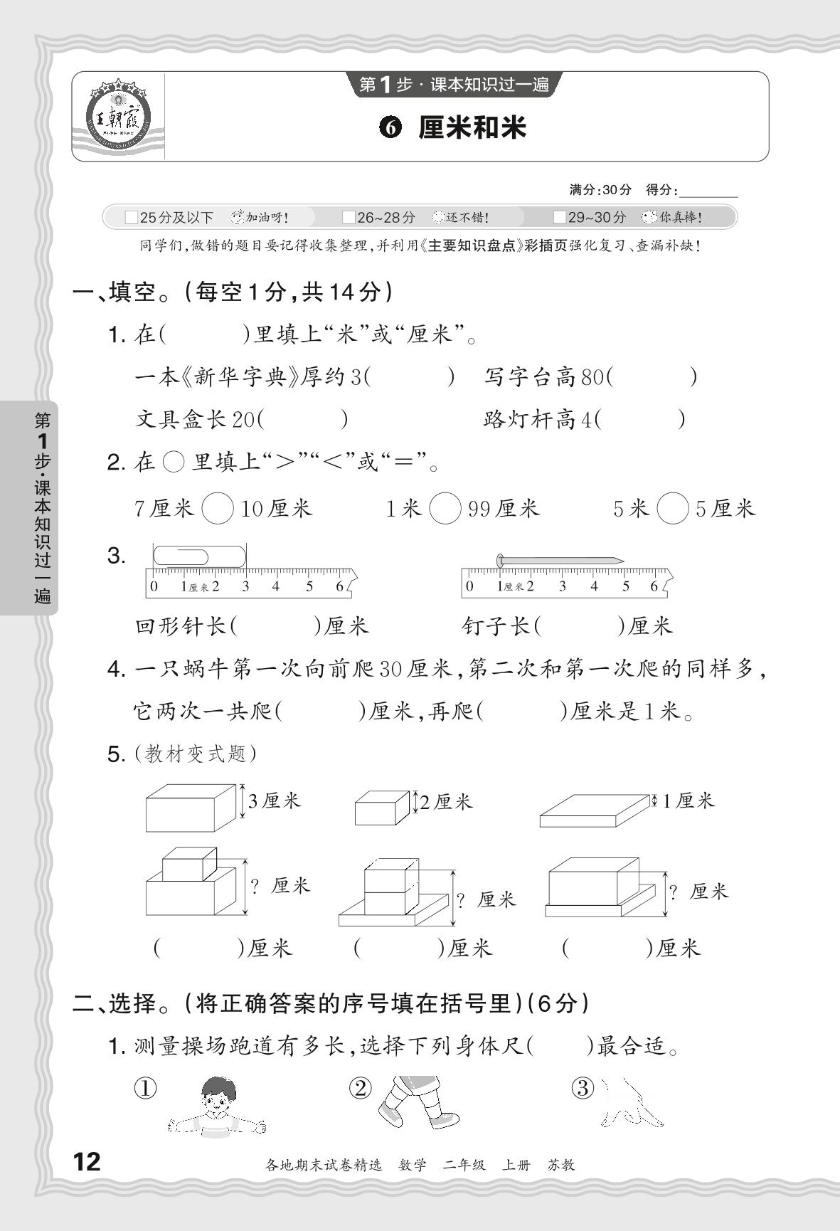2023秋上册二年级数学苏教版 期末过课本JX版·厘米和米【6】
