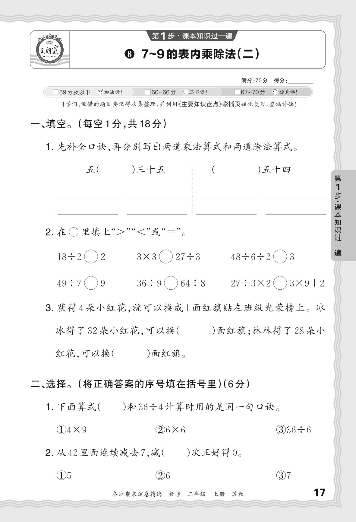 2023秋上册二年级数学苏教版 期末过课本JX版·7-9的表内乘除法(二)【8】