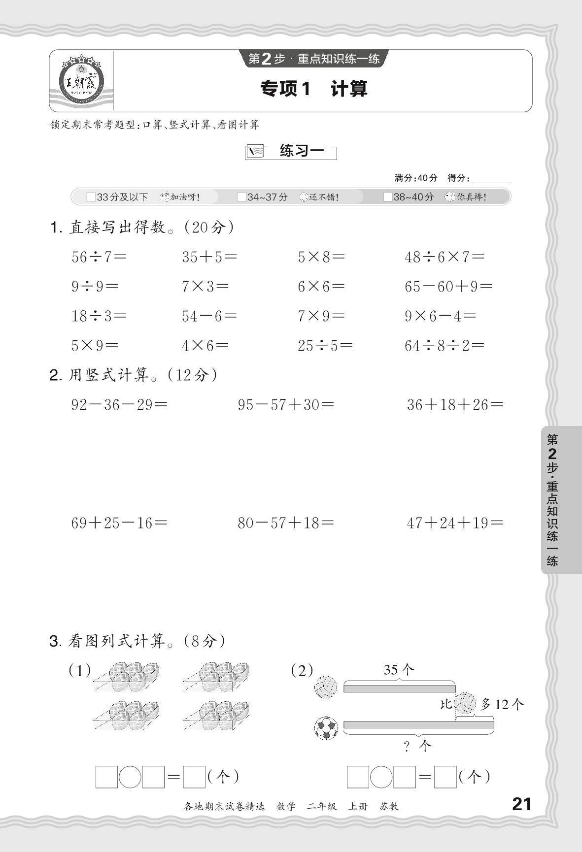 2023秋上册二年级数学苏教版 期末专项卷JX版·计算【1】