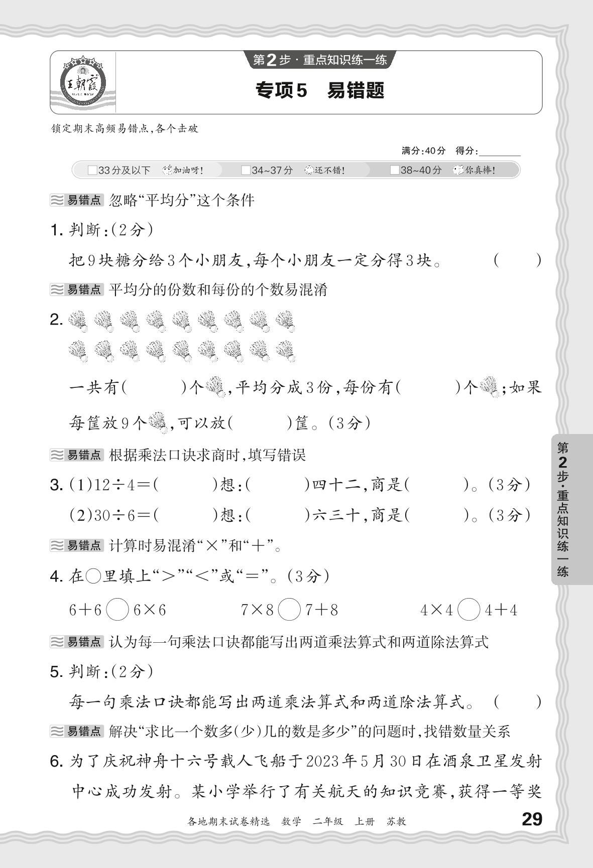2023秋上册二年级数学苏教版 期末专项卷JX版·易错题【5】