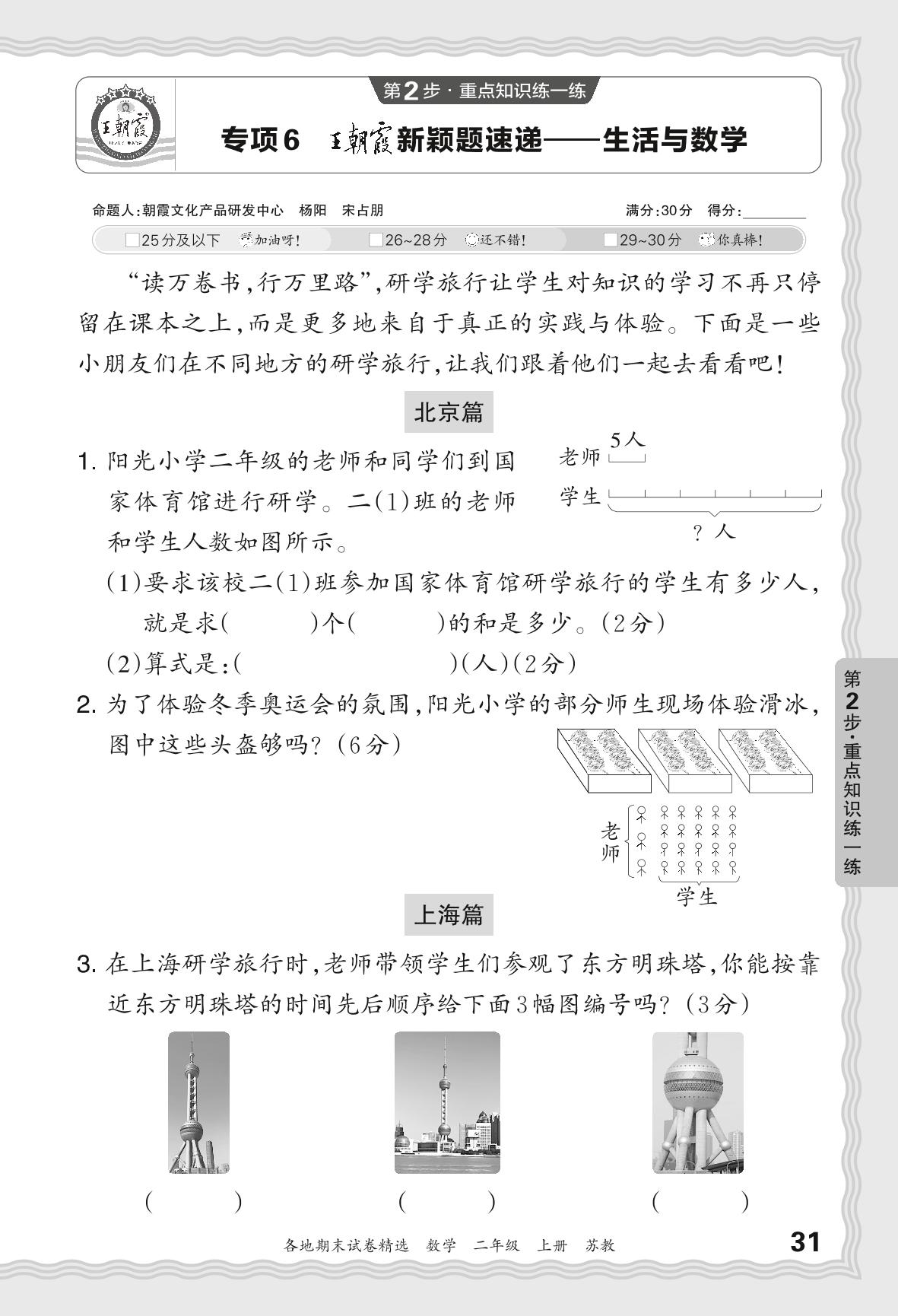 2023秋上册二年级数学苏教版 期末专项卷JX版·王朝霞新颖题速递——生活与数学【6】
